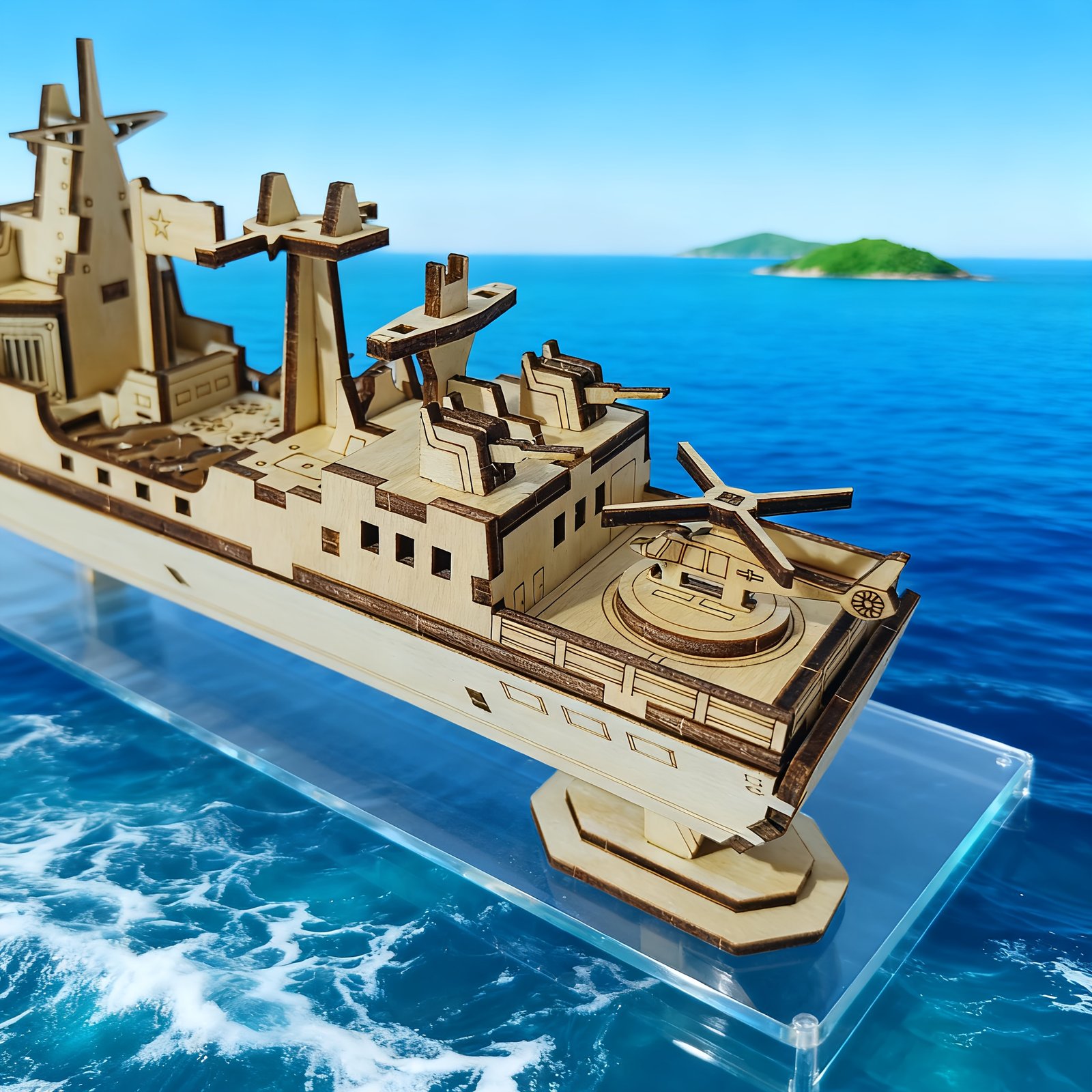 - جودة خشبية فاخرة وتصميم دقيق: كل قطعة مصممة بدقة فائقة من الخشب المتين بلون بيج طبيعي، مما يمنح النموذج النهائي مظهرًا أصيلاً وجمالًا لا يضاهى، ويجعله إضافة رائعة لأي ديكور.