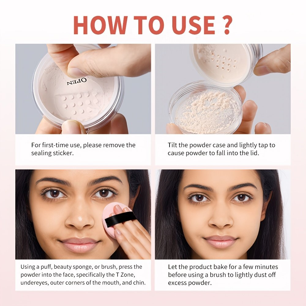 - אפקט טשטוש מיידי: להתראות לקמטוטים ונקבוביות פעורות! אבקה זו מעניקה לך גימור חלק וללא פגמים, כמו פילטר טבעי לעור שלך, כדי שתיראי מושלמת בכל תמונה.