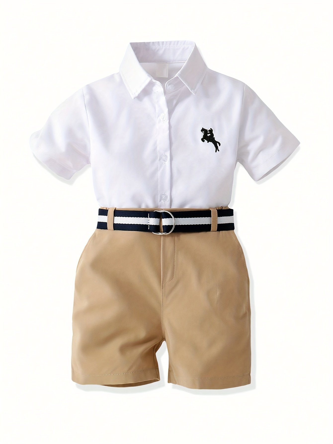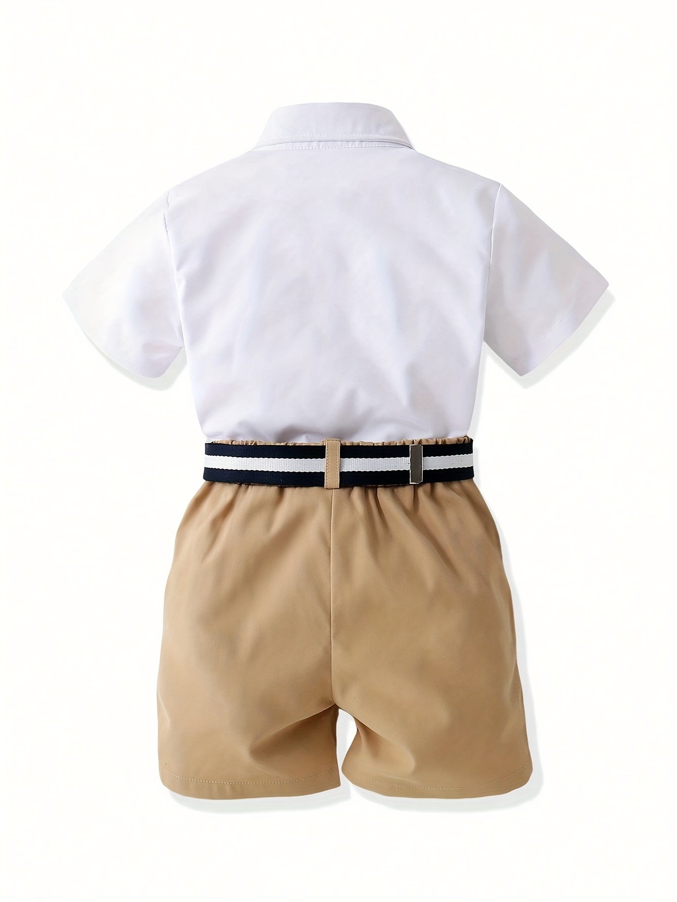 - עיצוב אלגנטי ויוקרתי: חולצה לבנה רקומת בכישרון מלווה במכנסיים קצרים בצבע חאקי בגזרה אופנתית, ליצירת מראה ייחודי שיהפוך את ילדך למרכז העניינים באירועים מיוחדים. פרטי הכפתורים האלגנטיים מוסיפים נגיעה קלאסית ומיוחדת.
