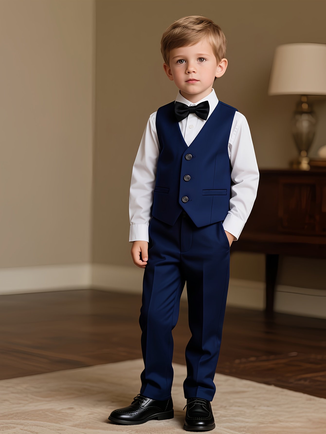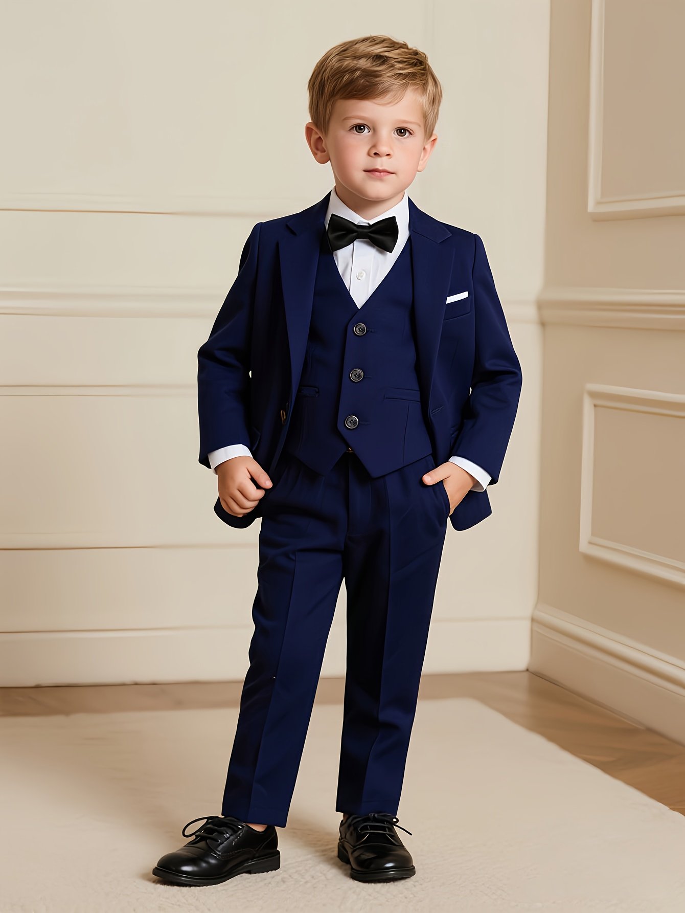 תנו לקטן שלכם לזהור כנסיך בכל אירוע מיוחד עם החליפה הרשמית היוקרתית שלנו לבנים! מעוצבת במיוחד כדי לשלב אלגנטיות גבוהה ונוחות מושלמת, חליפה זו היא הבחירה האידיאלית לחתונות, חגים, מסיבות, וכל אירוע הדורש נגיעה של יוקרה. תנו לבנכם לחוות רגעים בלתי נשכחים בביטחון ובקסם שאין כדוגמתו, כדי למשוך את כל המבטים בכל מקום שבו הוא נמצא.