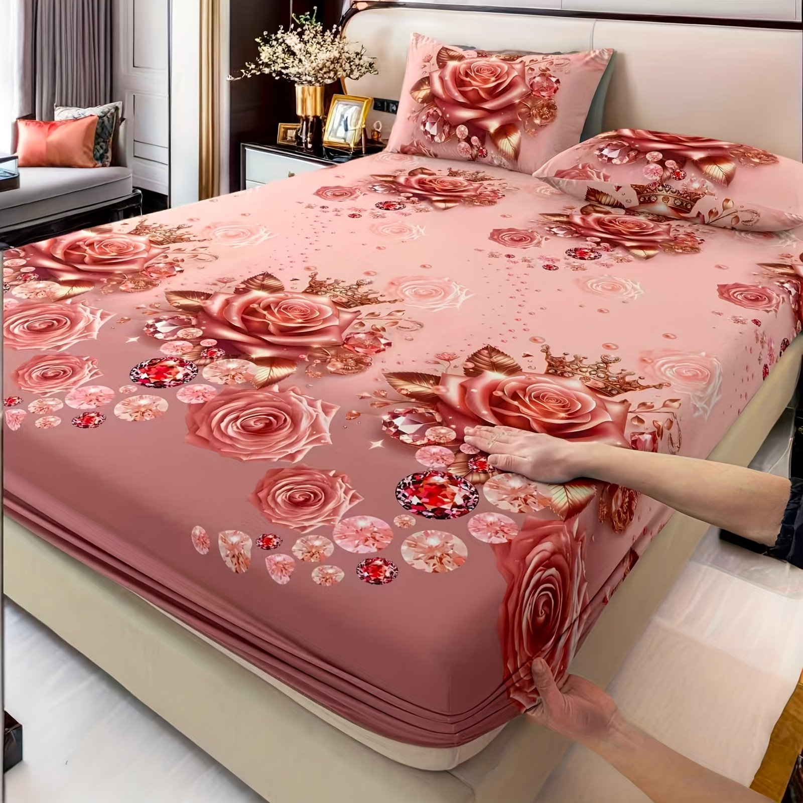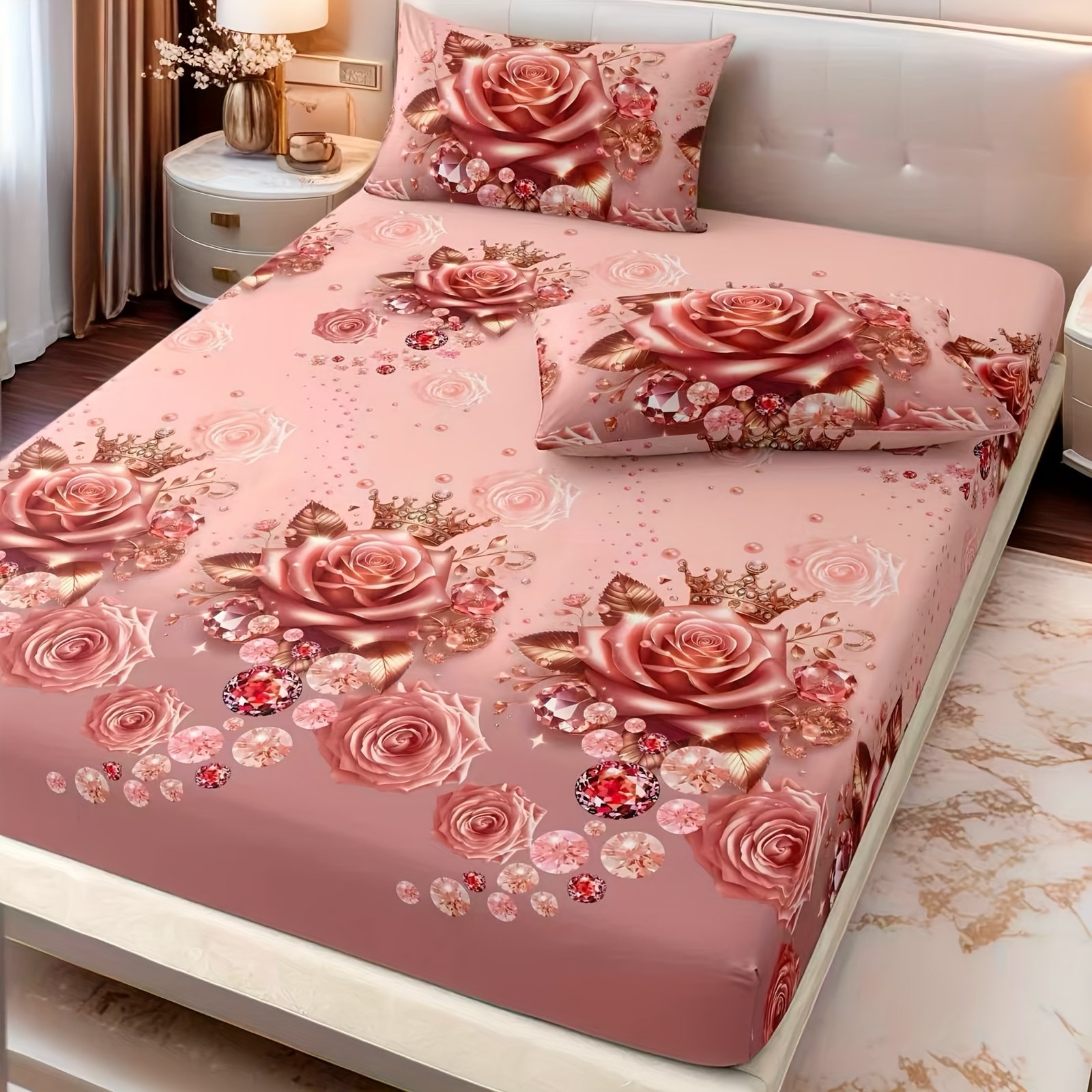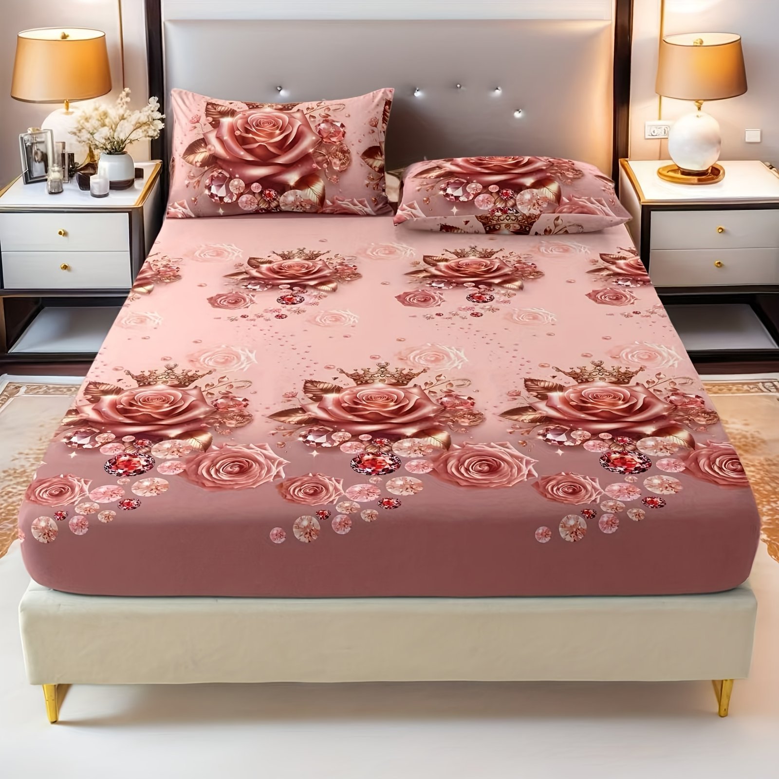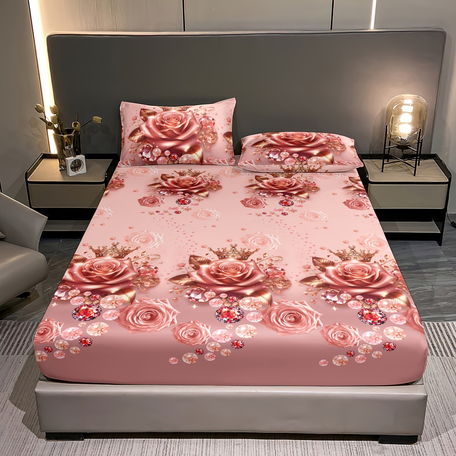 הפוך את חדר השינה שלך למקלט של רומנטיקה ואלגנטיות עם סט מצעי הוורדים היוקרתי הזה. עיצוב ייחודי המשלב רכות עילאית ויופי שובה לב, כדי להעניק לך חווית שינה ללא תחרות ולהוסיף נגיעה של קסם ללב ביתך.