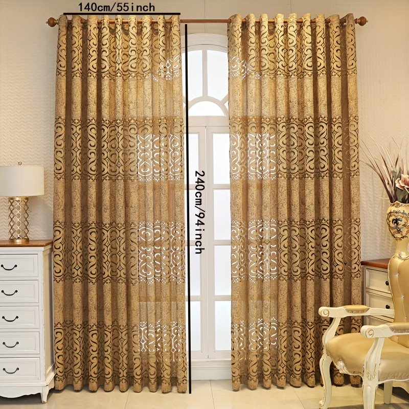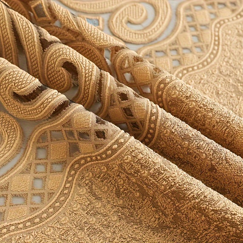 - דוגמאות גיאומטריות קסומות: הוילון מעוטר בדוגמאות ז'קאר גיאומטריות מורכבות ומעודנות, המוסיפות עומק ויזואלי ומשיכה אמנותית, ההופכות אותו לפריט מרכזי המושך את העין ומשלים את אלגנטיות הרהיטים שלכם.