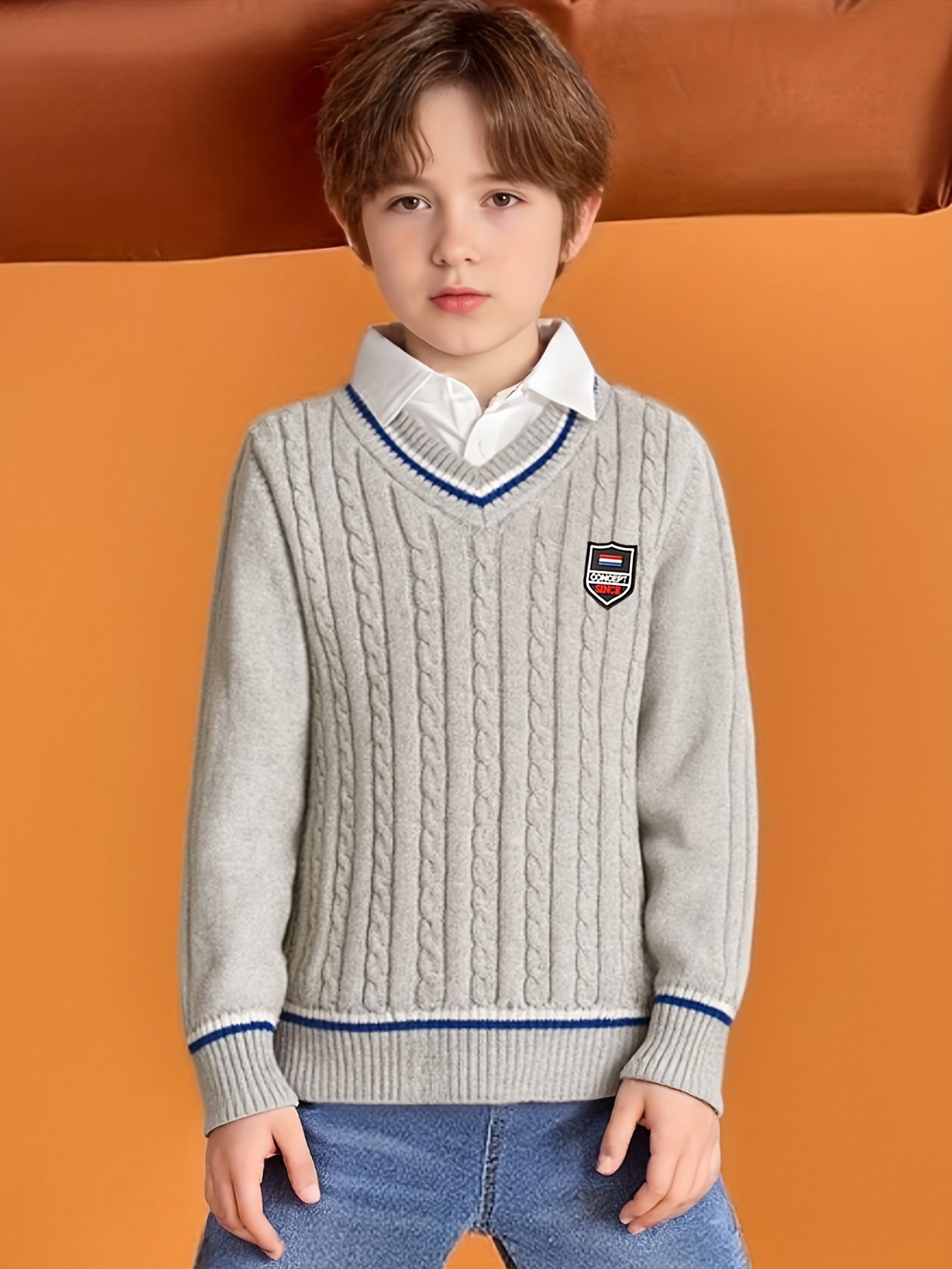 תגידי שלום לדאגות קור החורף וברוך הבא לסגנון וחום ללא תחרות עבור הקטנטן שלך! אנו מציגים בפנייך את סוודר הבנים המפוספס והאלגנטי, שתוכנן לשלב נוחות מרבית עם מראה אופנתי ומושך. תני לילדך ליהנות מחום וחופש תנועה, בין אם בבית הספר, במסיבה או בטיול משפחתי מהנה. זוהי הבחירה המושלמת להוספת נגיעה של אלגנטיות וכיף למראה הנסיך הקטן שלך.