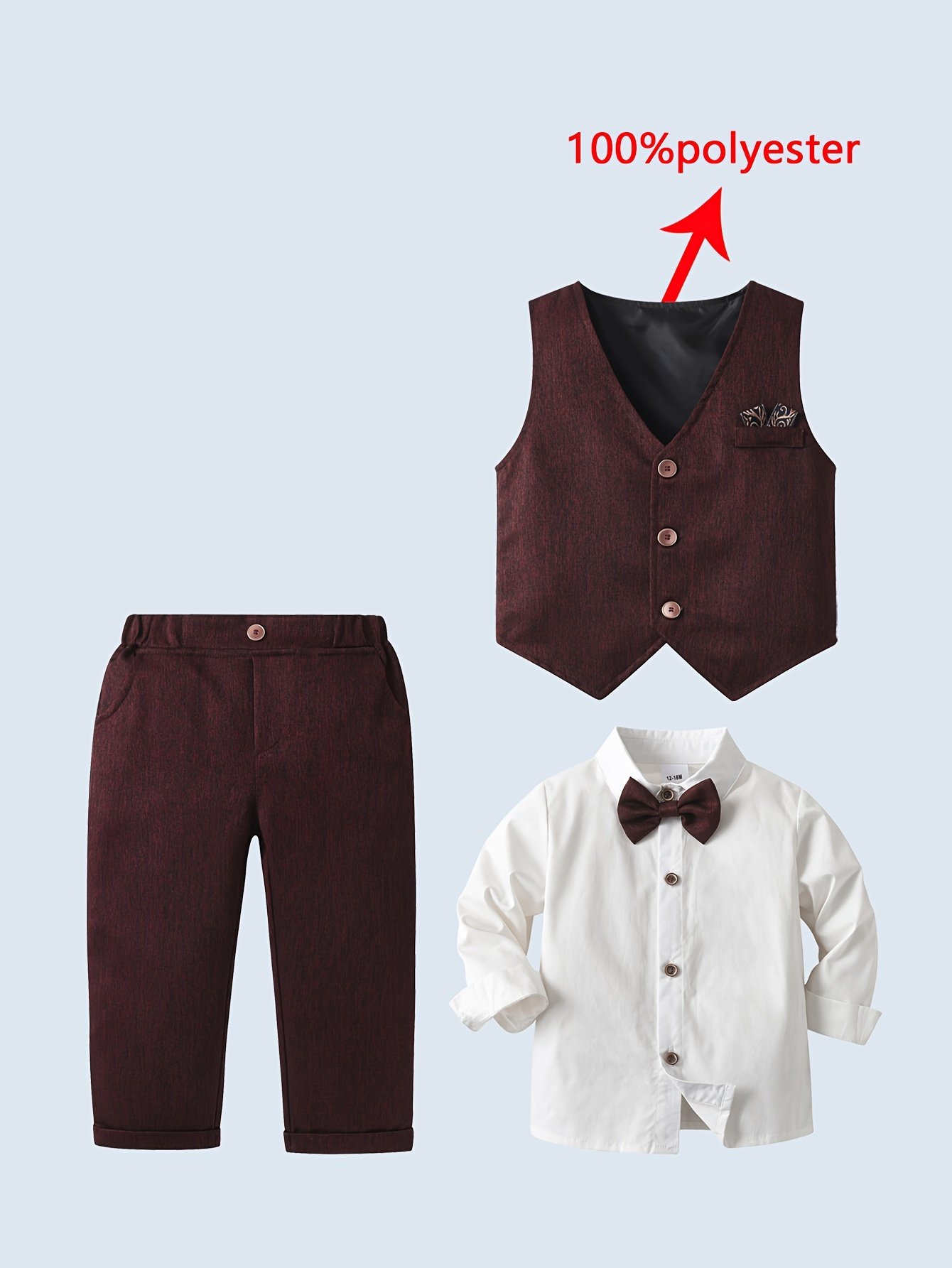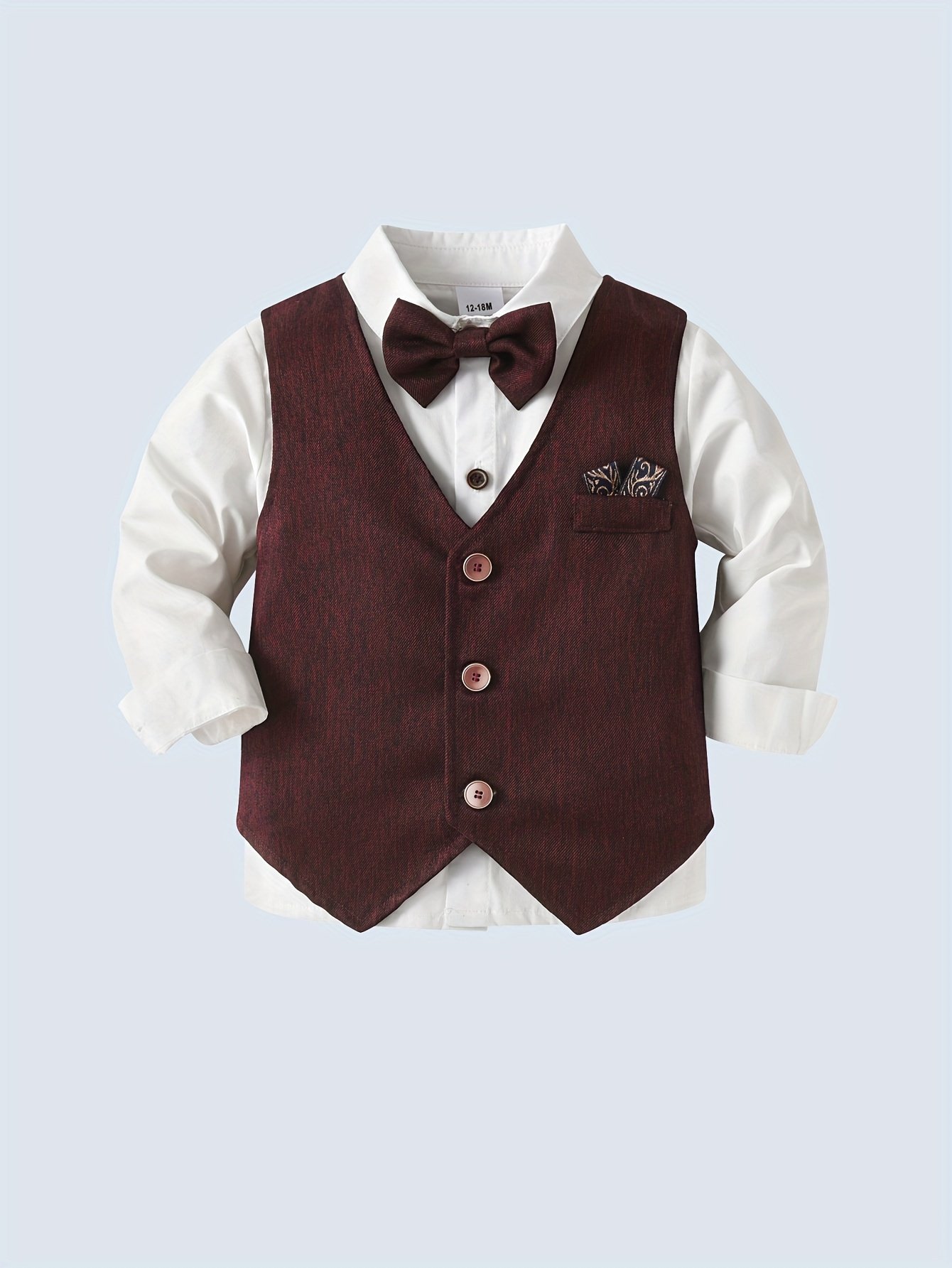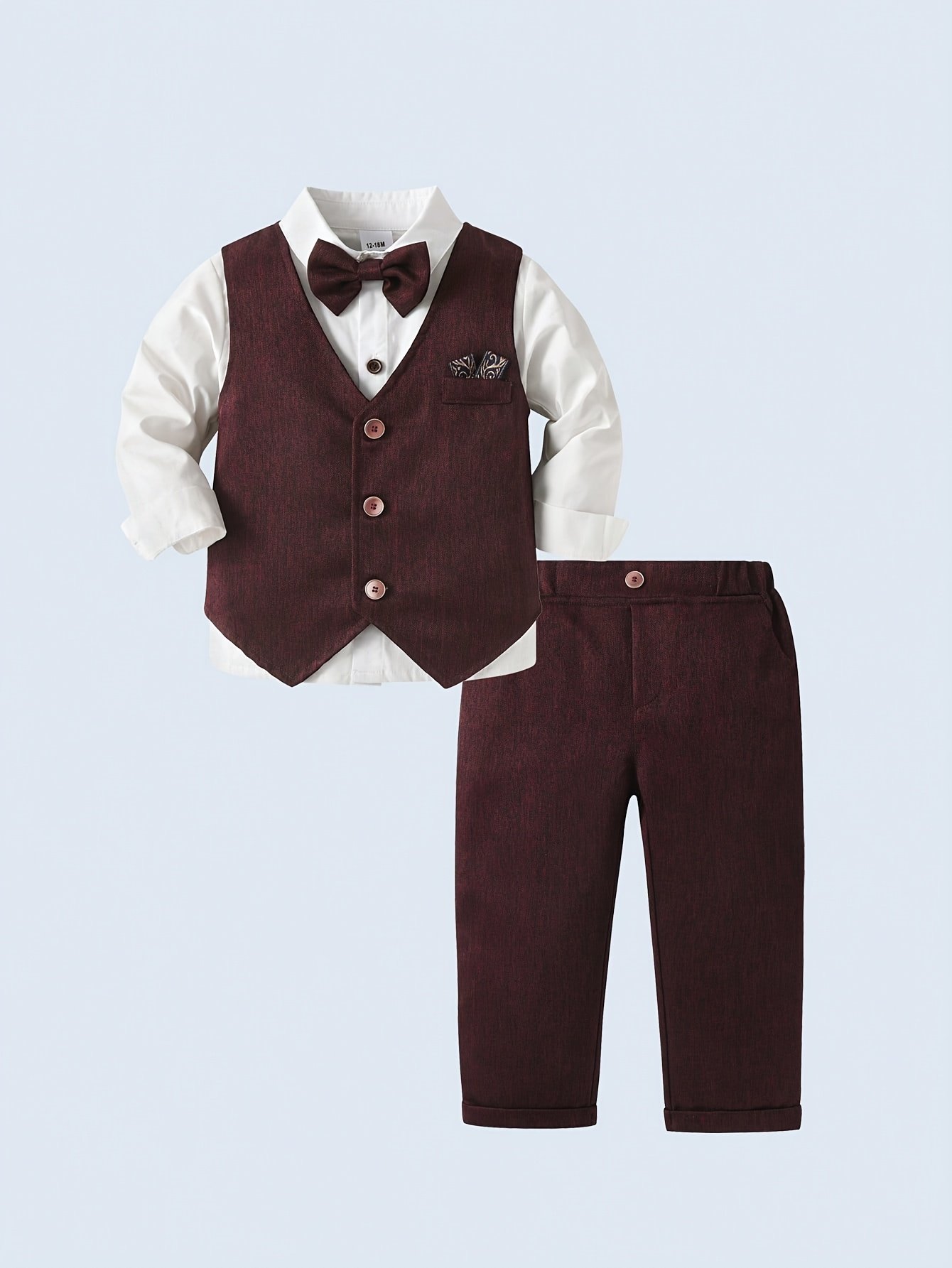 הפוך את הקטנטן שלך לנסיך אמיתי בכל אירוע! אנו מציגים לכם את חליפת הבנים האלגנטית בת שלושה חלקים, שתוכננה במיוחד כדי להוסיף נופך של יוקרה וקסם למראהו. מושלמת למסיבות, ימי הולדת, חתונות, או כל חגיגה מיוחדת, חליפה זו מבטיחה שילדכם יהיה במרכז תשומת הלב באלגנטיות שאין כדוגמתה.