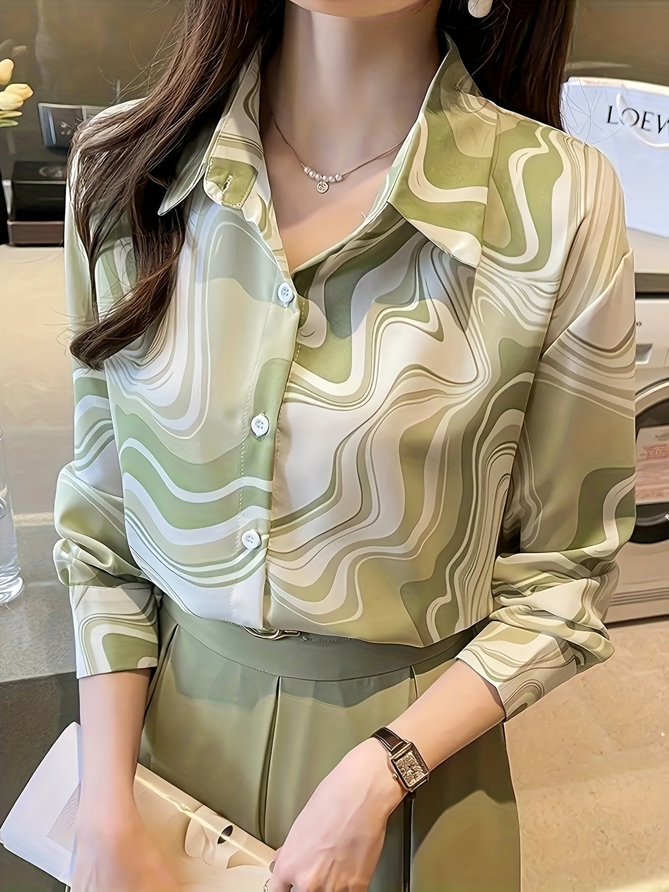 שדרגי את המראה היומיומי והמקצועי שלך עם החולצה הנשית הרחבה שלנו בעלת השרוולים הארוכים, שעוצבה לשלב בין אלגנטיות מוחלטת לנוחות עילאית. עם הגזרה הנוחה והדפסיה הגאומטריים המושכים בצבעי ירוק וכחול, חולצה זו היא התוספת המושלמת לארון הבגדים שלך כדי להתעדכן בטרנדים האחרונים מהאביב ועד הסתיו.
