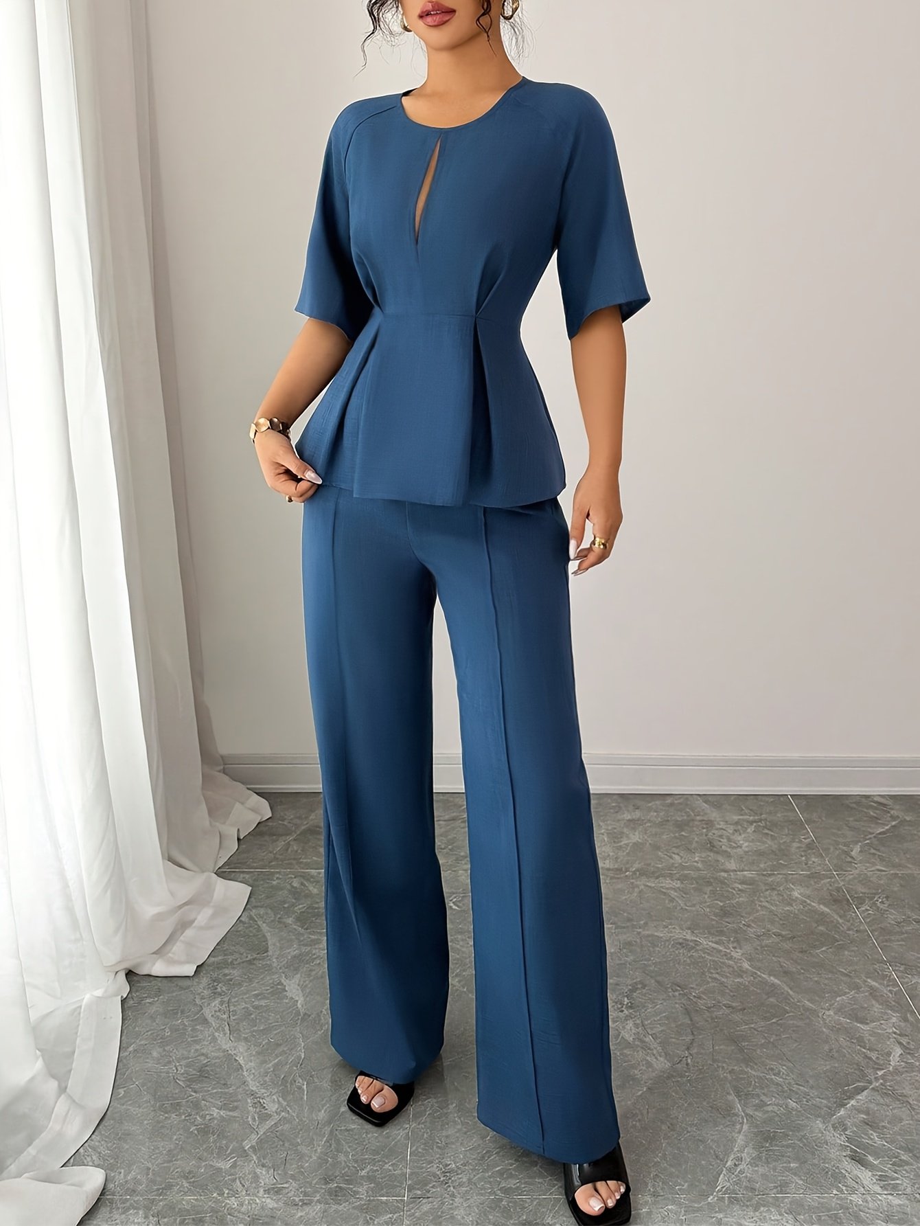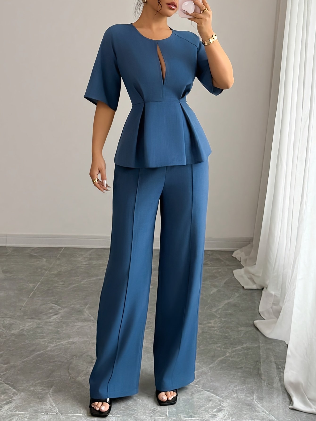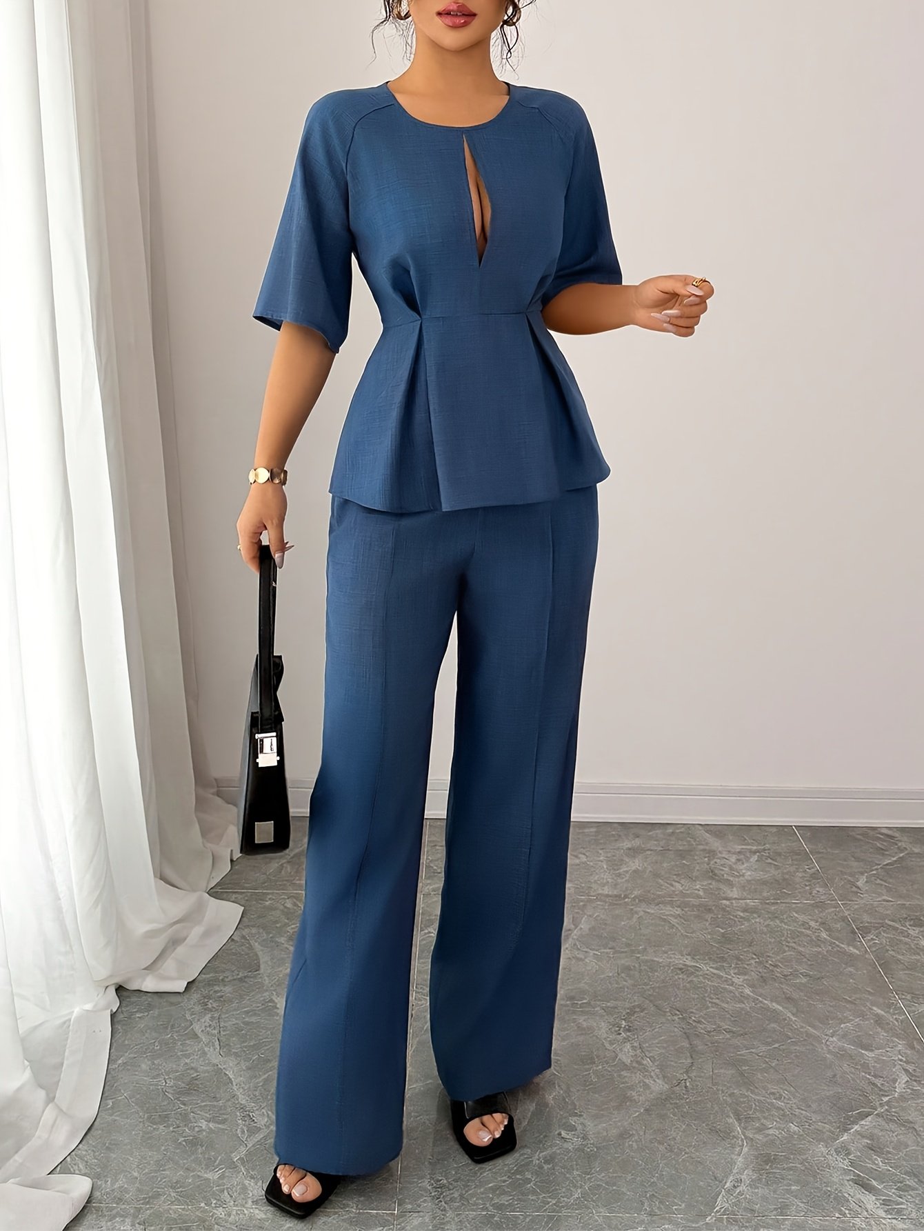 גלי את פסגת האלגנטיות העכשווית והנוחות המוחלטת עם סט שני החלקים שלנו, שעוצב במיוחד לאישה שלא מתפשרת על המראה שלה. סט אופנתי זה בצבע כחול רגוע יעניק לך מראה שלם המשלב יוקרה פרקטית וקסם יוקרתי, מושלם לכל אירועייך, מפגישות עסקיות ועד למפגשים ערב. תני לו לשקף את טעמך המשובח ואת אישיותך הייחודית.