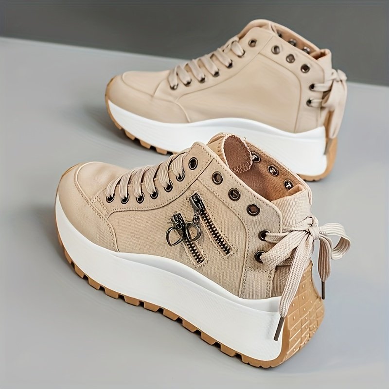 - סוליית פלטפורמה עבה לנוחות מירבית: תהני מצעדים בטוחים ונוחים לאורך כל היום בזכות סוליית הפלטפורמה העבה שלא רק מוסיפה מגע אופנתי נועז, אלא גם מספקת תמיכה ונוחות יוצאת דופן לכפות רגלייך.