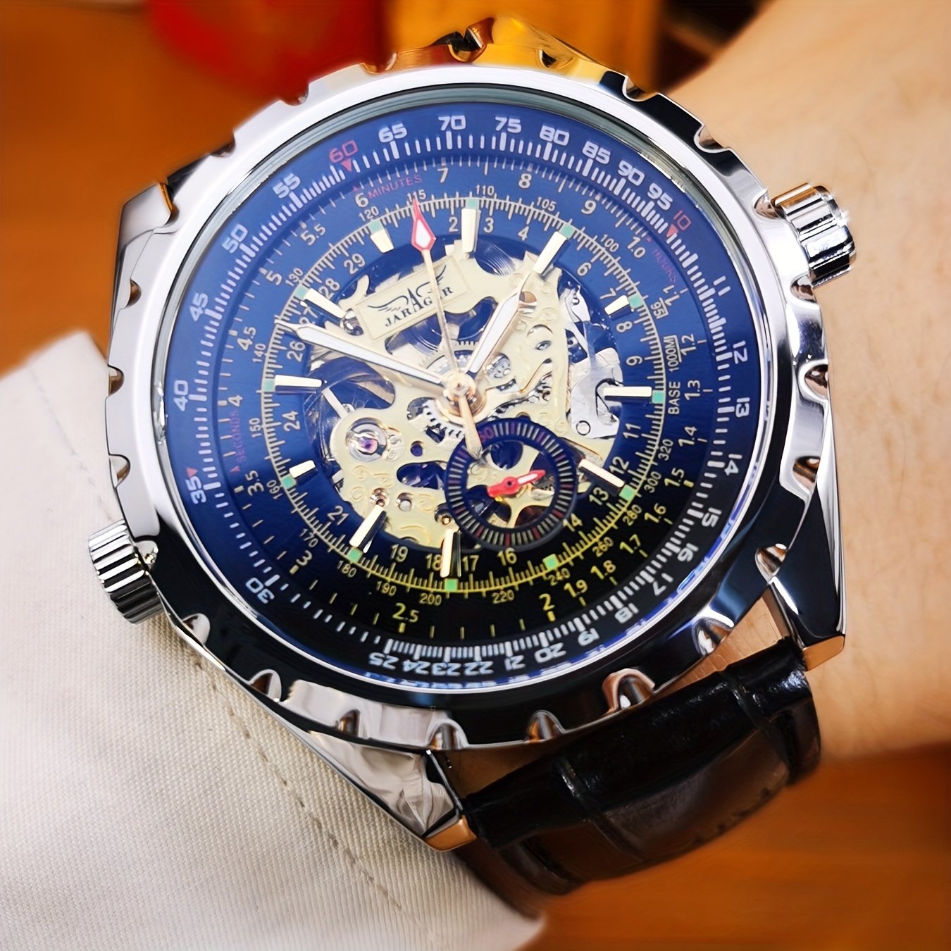 - עיצוב שלדי חלול ייחודי: צפה בלב הפועם של השעון, החושף את מורכבות המנגנון הפנימי ביופי שובה לב, והופך את השעון שלך ליצירת אמנות נעה שמושכת את כל המבטים.