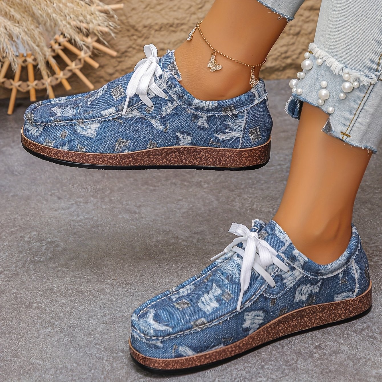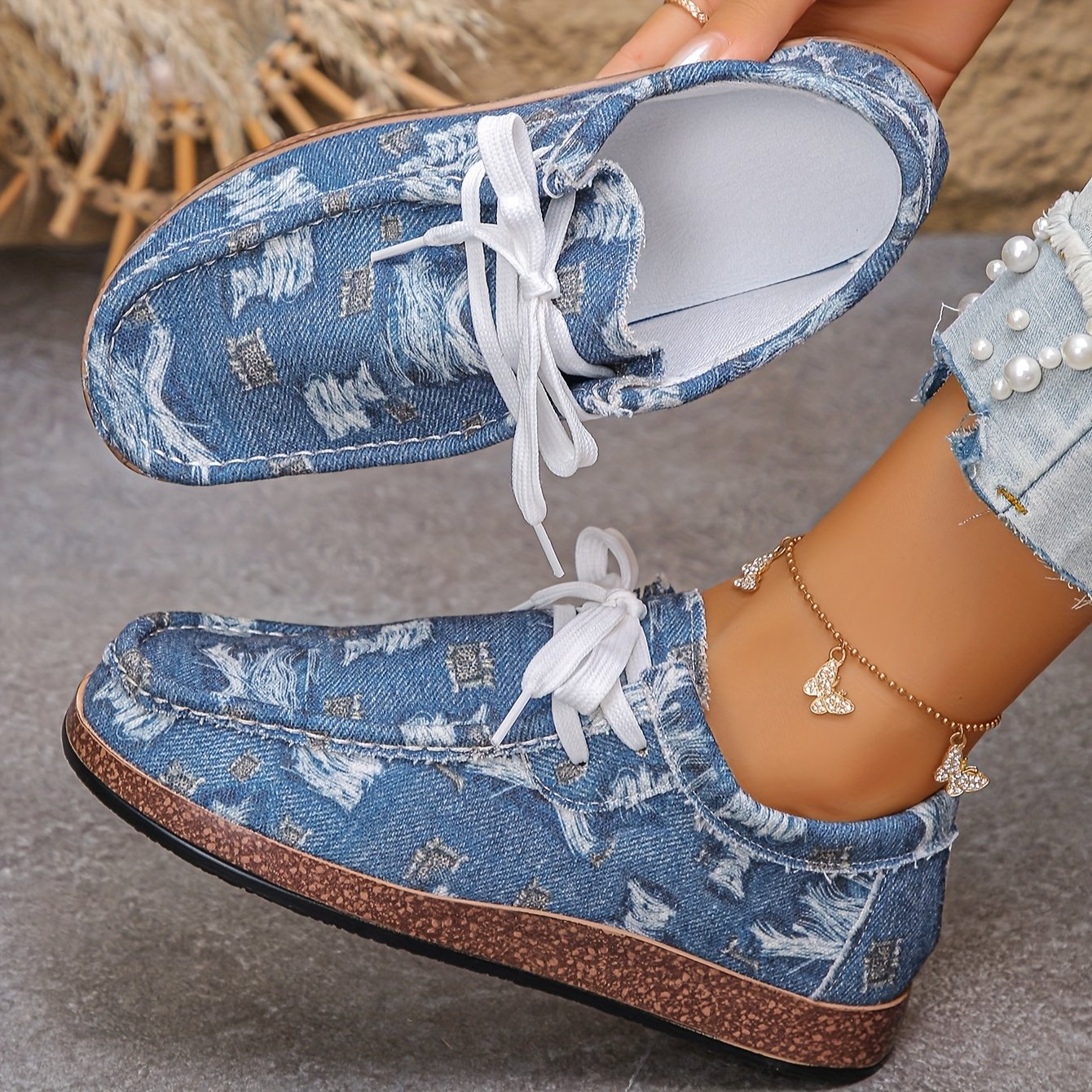 - עיצוב פרחוני אלגנטי: הנעל מתהדרת בדוגמאות פרחוניות עדינות על בד לבן טהור, ומוסיפה מגע נשי מושך למראה הקז'ואל שלך.