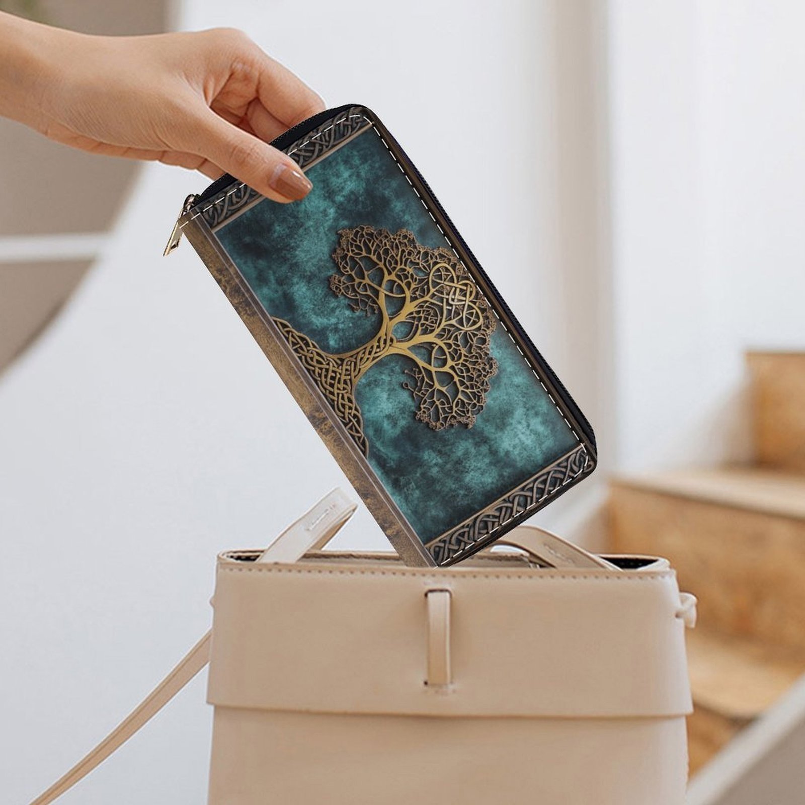 גלו את ארנק עץ החיים הקלטי, יצירת אמנות המשלבת את יוקרת העיצוב הקלטי הנצחי עם פונקציונליות מעולה. הוא עוצב להיות בן לוויה המושלם שלכם, בין אם אתם גבר או אישה. זה לא סתם ארנק, אלא פריט המבטא את טעמכם המעודן ואת הערכתכם לפרטים תורשתיים עתיקים. תיהנו ממגע של קסם קלטי בחיי היומיום שלכם עם עיצוב המספר סיפורים מהטבע ומהחיים.