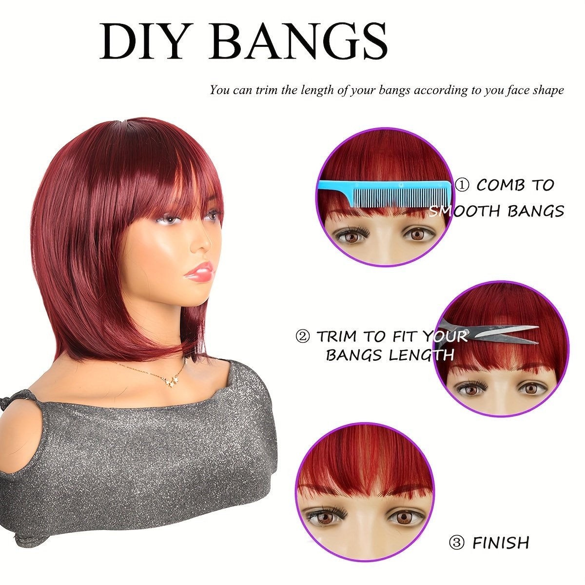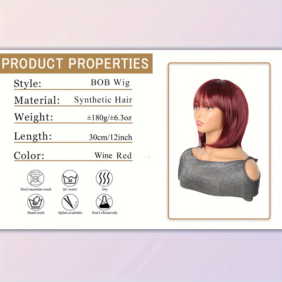 - עיצוב אופנתי ומושך: מאופיינת בתסרוקת בוב פופולרית באורך 12 אינץ' עם פוני אלגנטי המוסיף מגע של חיוניות וקסם לפנים שלך, מתאימה לצורות פנים שונות ומעניקה לך מראה אופנתי ועכשווי.