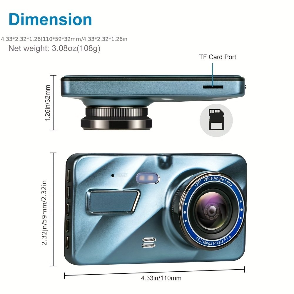 - זווית צפייה רחבה במיוחד של 170 מעלות: צלמו תמונות פנורמיות המכסות את כל הכביש והנתיבים הצדדיים, להפחתת שטחים מתים ומתן מידע מרבי.