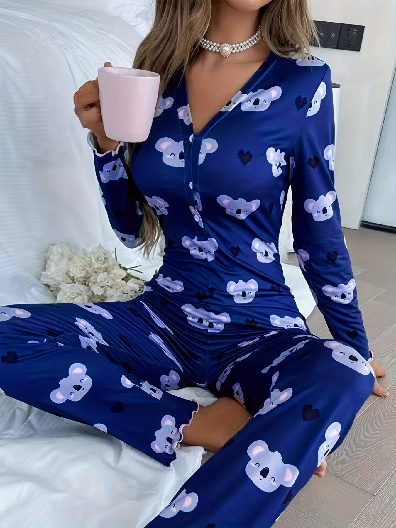 עם קורם של לילות החורף, את מחפשת את השילוב המושלם של חום, נוחות וקסם? גלי את ג'אמפסוט הפיג'מה המקשה אחת בעיצוב העצלן הייחודי, שעוצב במיוחד כדי להעניק לך חוויה ללא תחרות של פינוק ורוגע בביתך. העיצוב הזה אינו רק בגד שינה, אלא הוא בן לוויתך המושלם להירגע בסטייל.