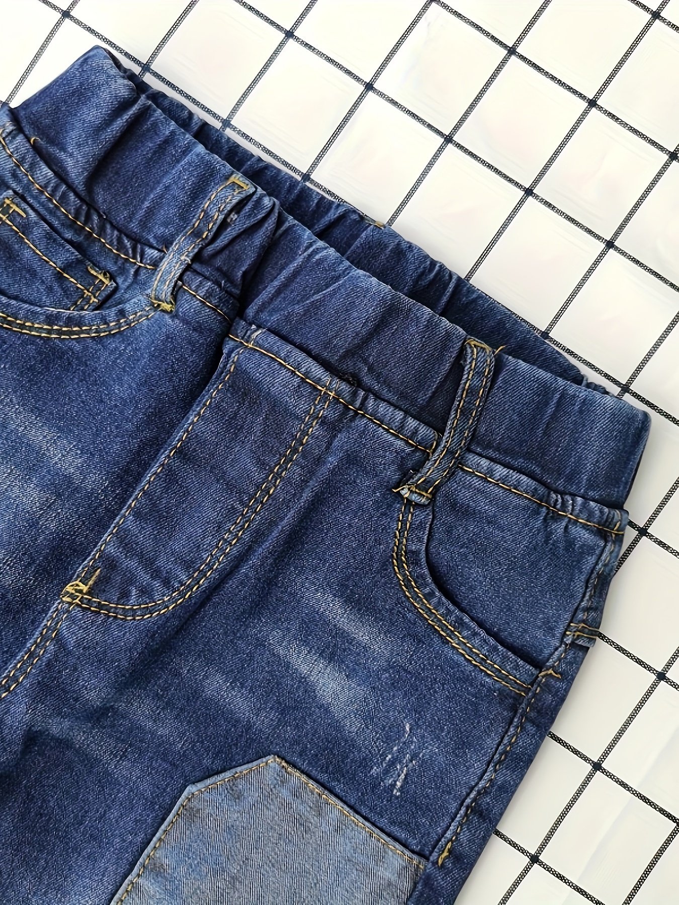 - פרטי טלאים אופנתיים: המכנסיים מתאפיינים בפרטי טלאים אלגנטיים המוסיפים מגע ייחודי וצעיר למראה ילדך, מה שהופך אותו למרכז תשומת הלב עם סגנונו המיוחד והייחודי.
