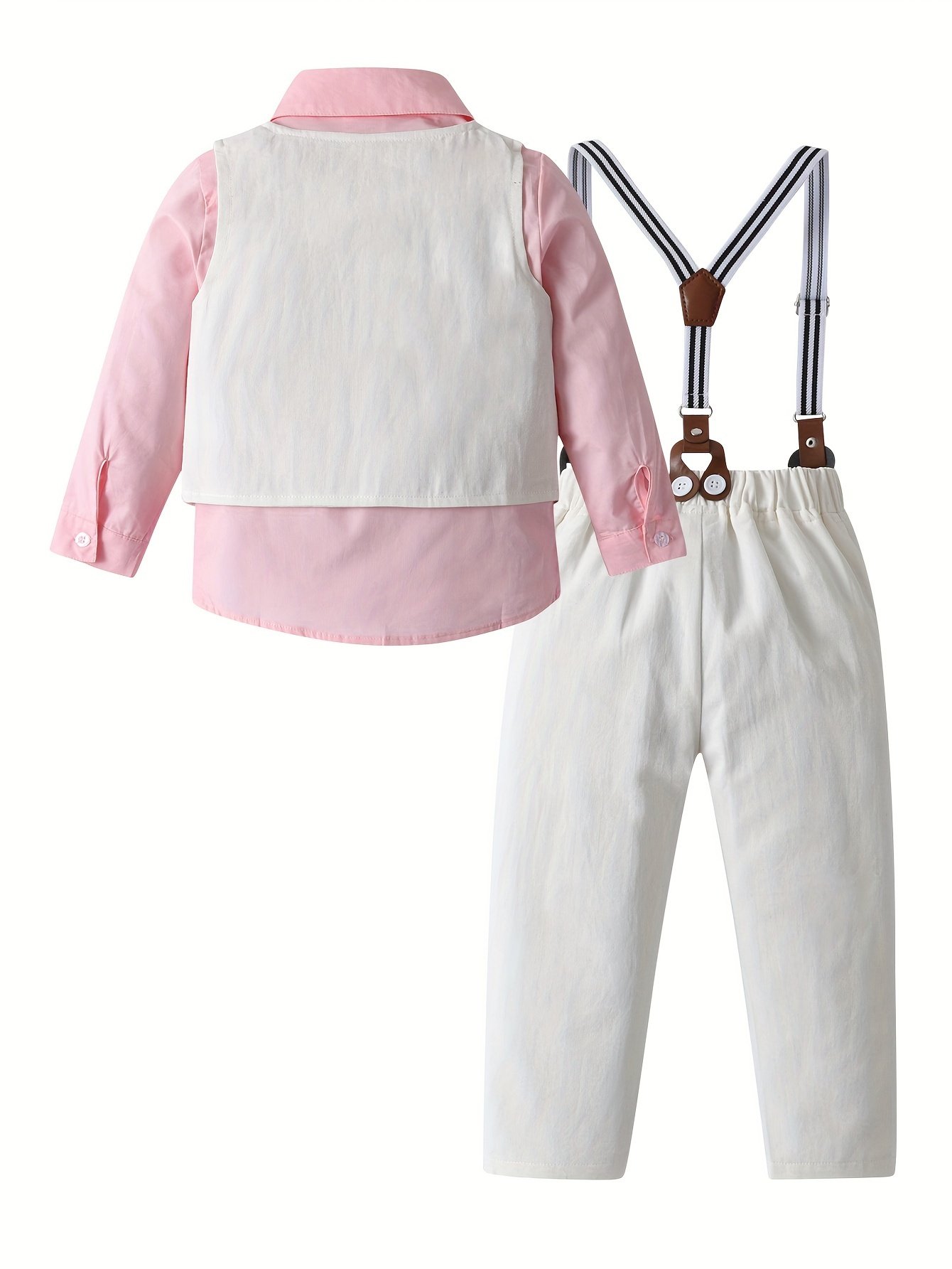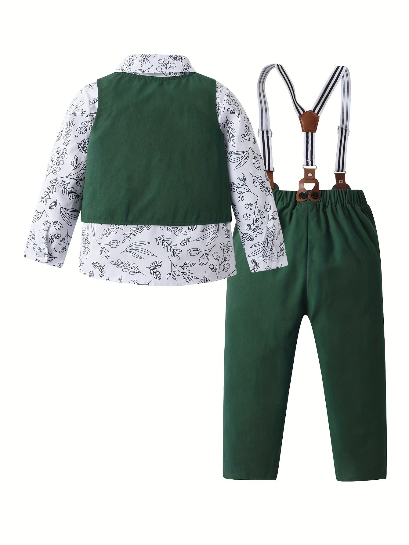 - אלגנטיות מושלמת: חליפה תלת-חלקית קסומה הכוללת חולצה עם שרוולים ארוכים המעוטרת בהדפס עלים אופנתי ועניבה אלגנטית, יחד עם מכנסיים עם שלייקס מיוחדים ווסט קלאסי. מראה שלם שיהפוך את ילדך למרכז תשומת הלב בכל מפגש.