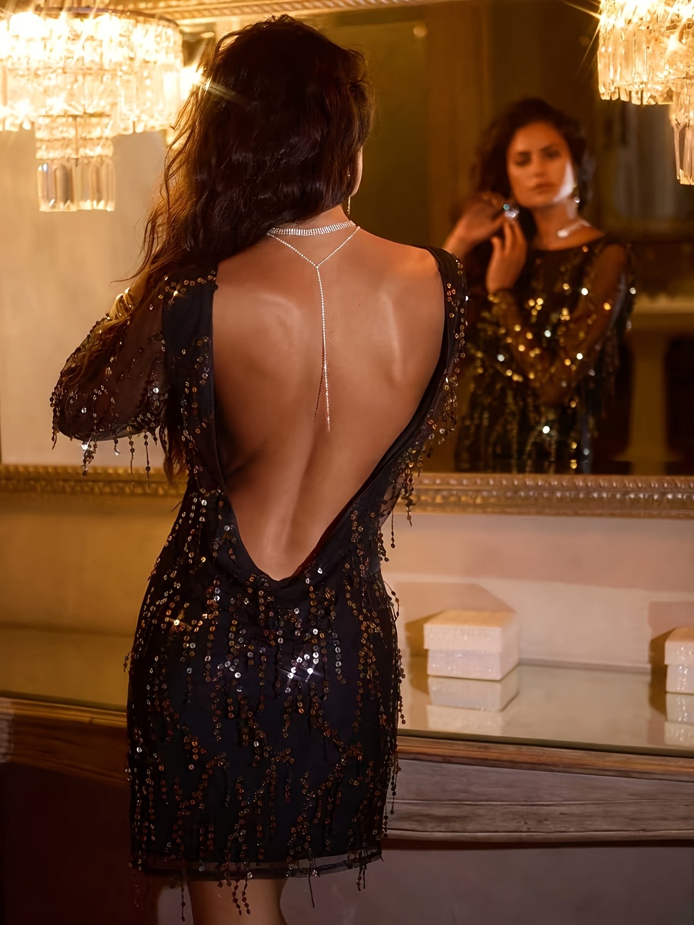 - גזרת מיני עם שרוול ארוך: איזון מושלם בין אלגנטיות עכשווית למשיכה, מה שהופך אותך מוכנה לכל מסיבה או ערב מיוחד, עם נגיעה של חום וקסם.