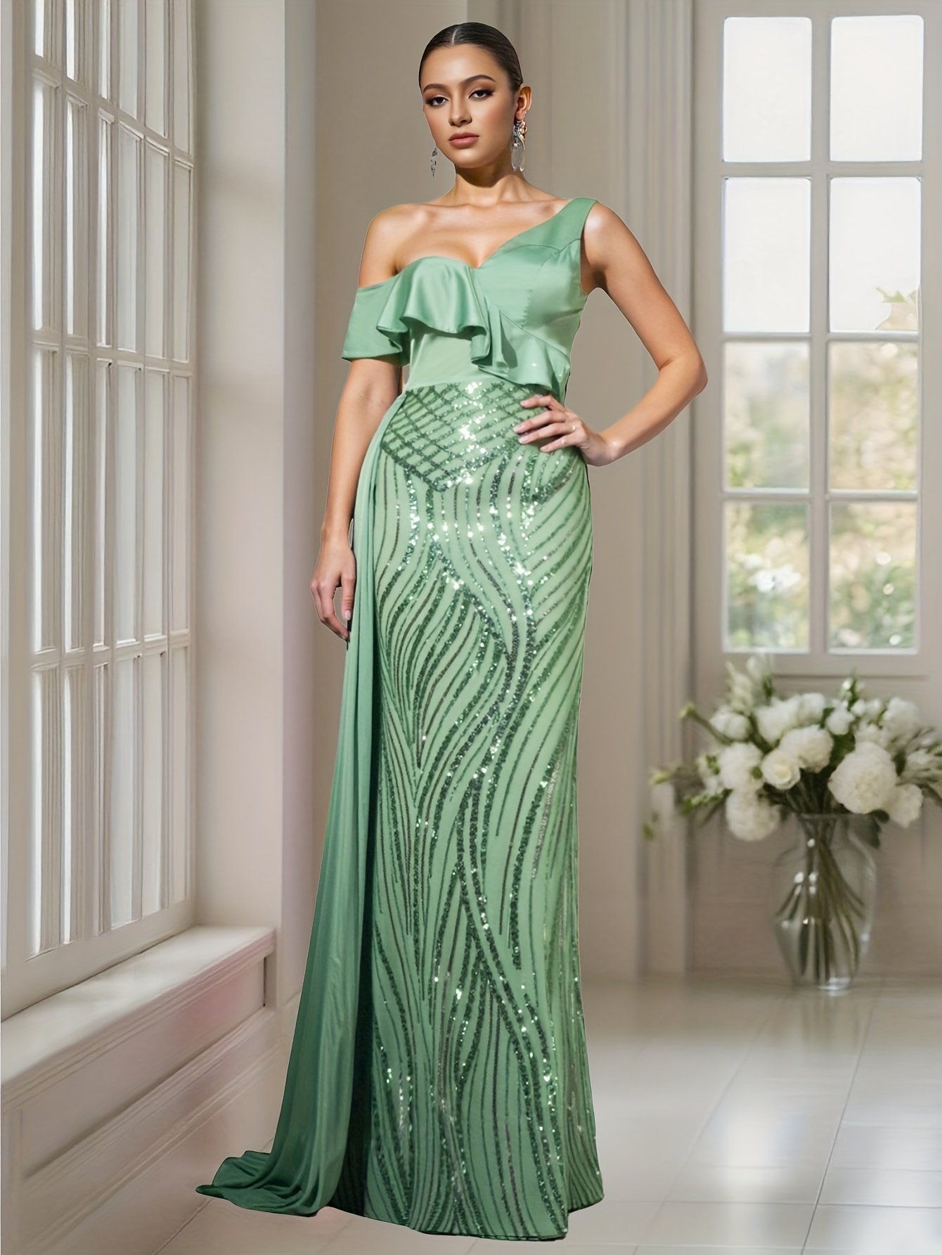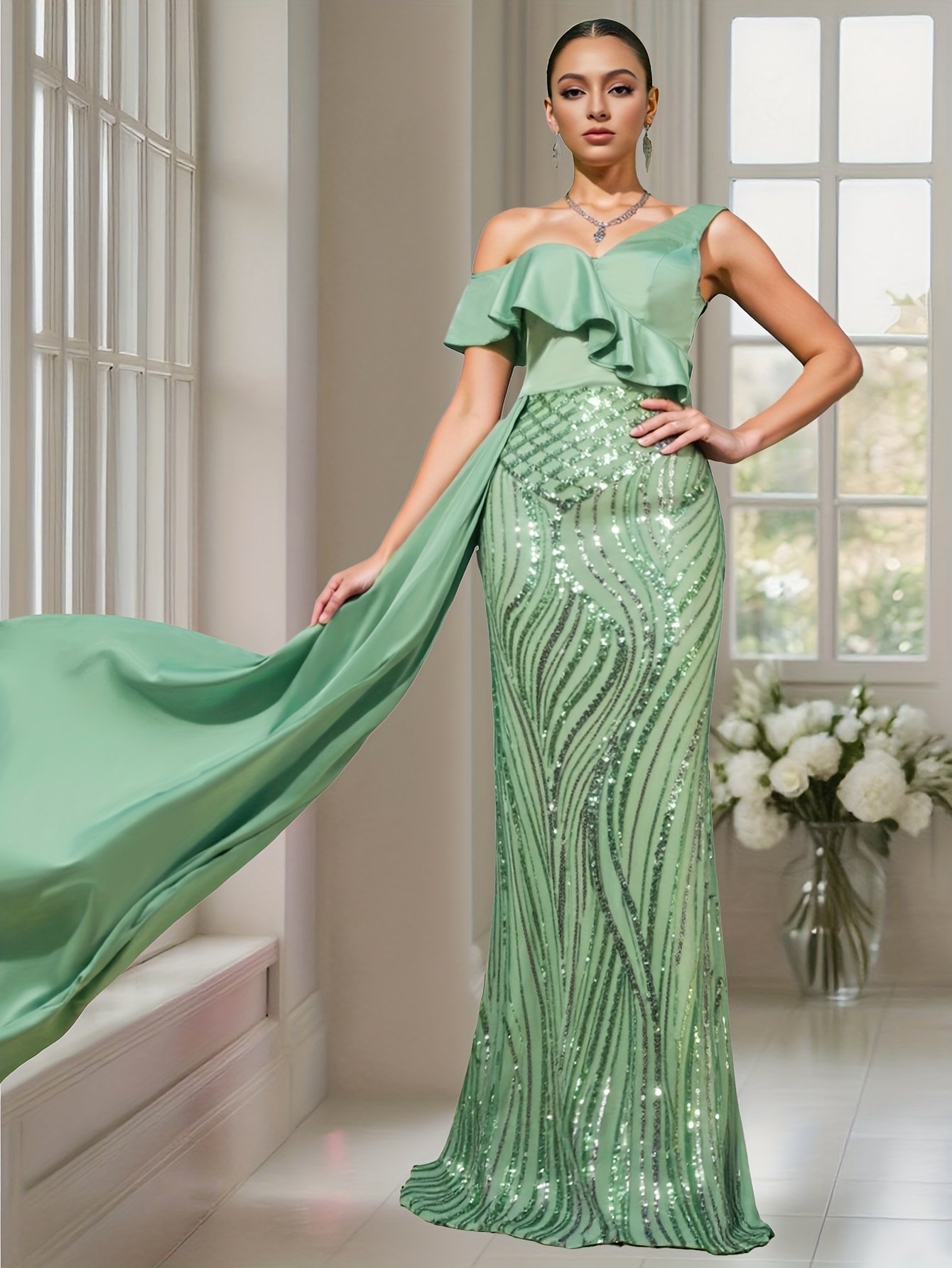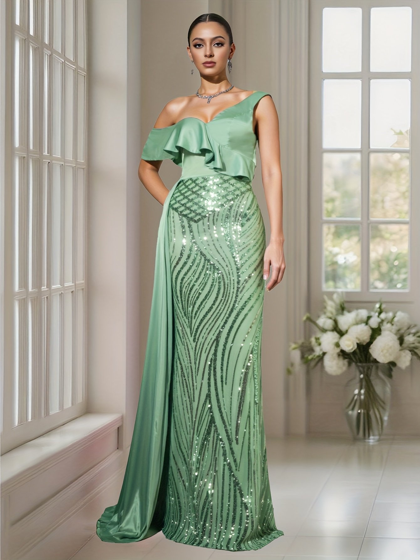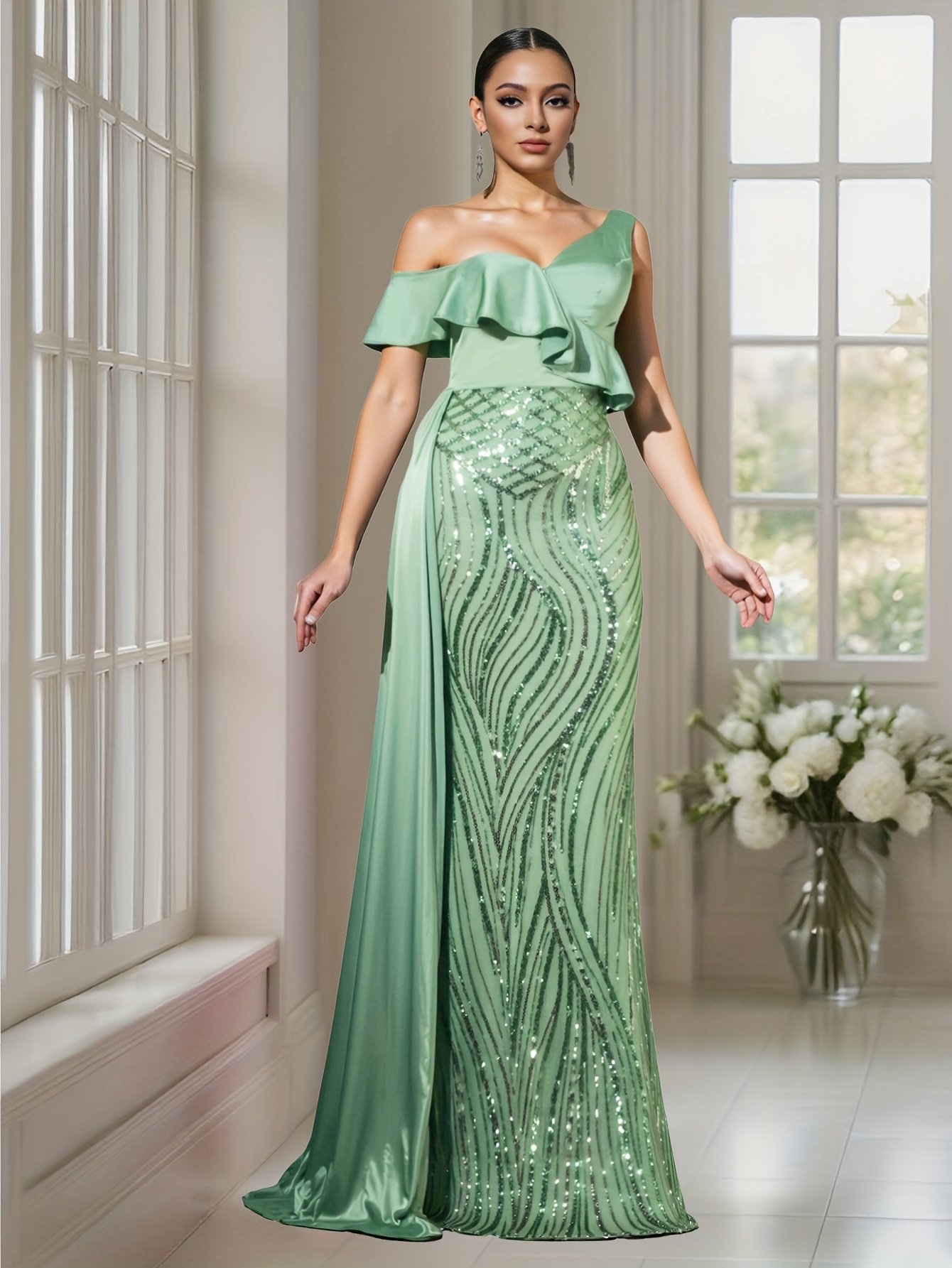 התכונני להשאיר רושם בל יימחה ולגנוב את ההצגה בכל אירוע עם השמלה המהפנטת הזו, שעוצבה כדי לחגוג את יופייך ואלגנטיות ללא פשרות. עיצוב ייחודי זה משלב תחכום מודרני עם קסם נצחי, כדי להעניק לך מראה מלכותי שיסנוור את כולם ויהפוך אותך למרכז ההערצה.