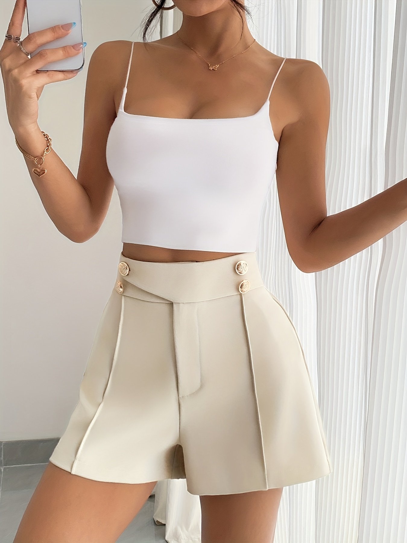- מגע יוקרתי: השורטים הללו כוללים כפתורי זהב מנצנצים שמעניקים להם נופך של יוקרה ועידון, מה שהופך אותם למושלמים לאירועי קיץ אלגנטיים או למראות יומיומיים מיוחדים.