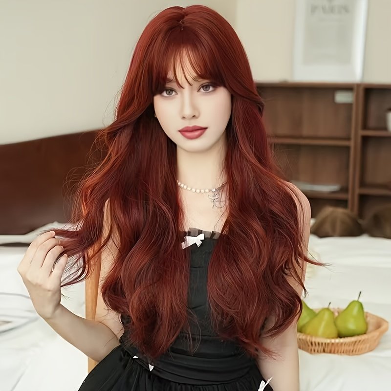 - צבע אדום-לבנה אופנתי וגלים יוקרתיים: תיהני מצבע אדום-לבנה חם ונועז, עם גלים גדולים וארוכים שזורמים בצורה חלקה כדי להעניק לך מראה אלגנטי ועכשווי שמושך תשומת לב ומתאים לאישה המודרנית.