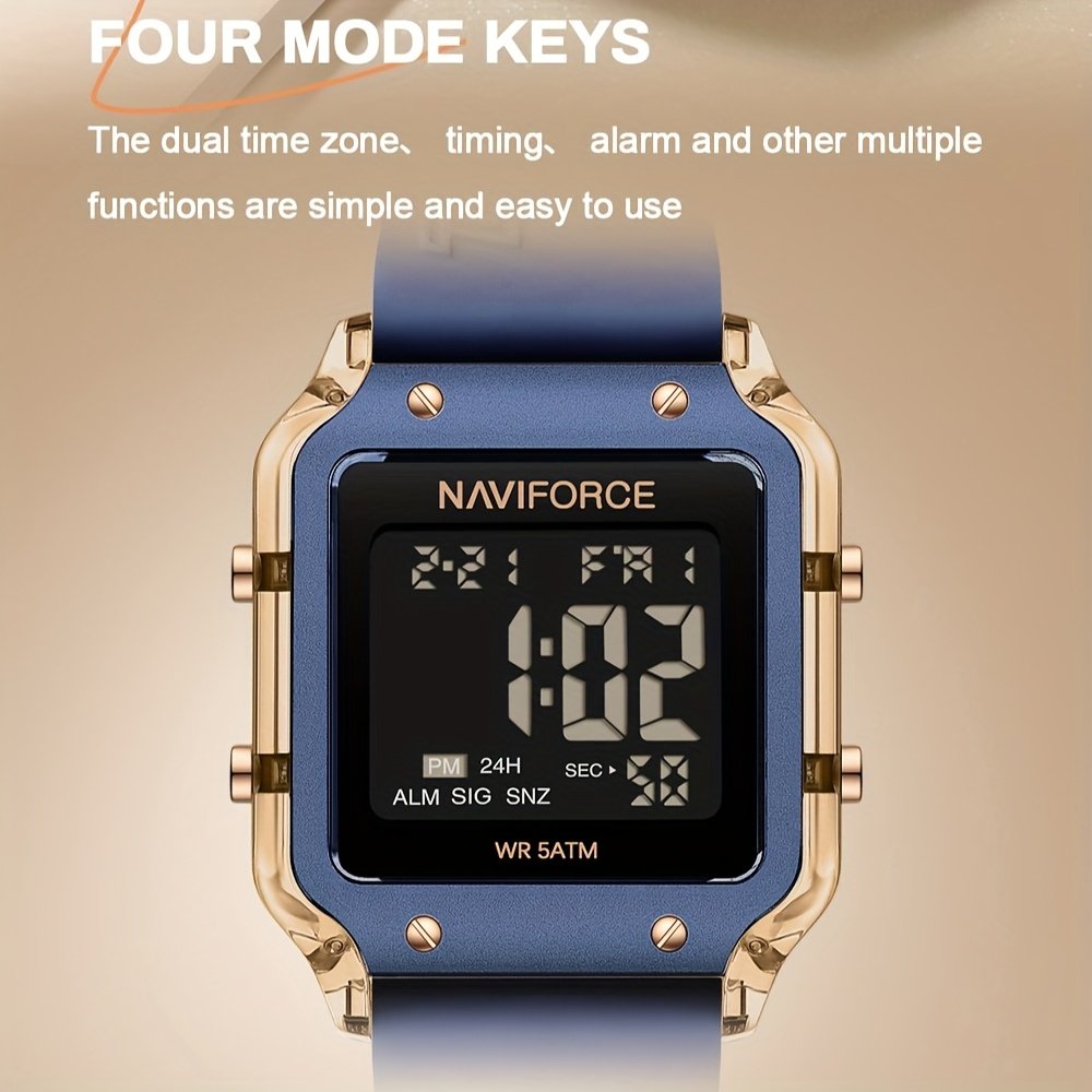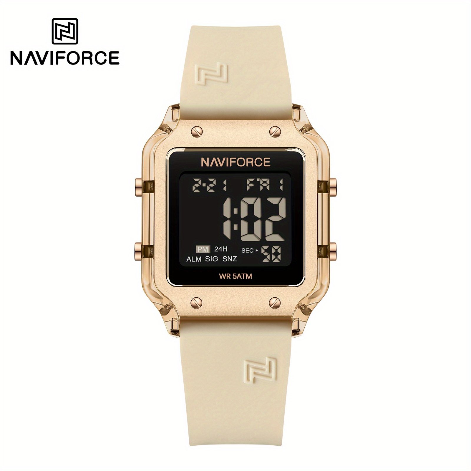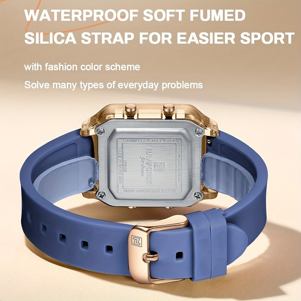 לכל אישה עכשווית המחפשת פריט המשלב בין אלגנטיות מודרנית ופרקטיות יומיומית, NAVIFORCE מציגה שעון יד שאין כמותו. עיצובו המרובע הייחודי מוסיף נגיעה של ייחודיות למראה שלך, בעוד שפונקציותיו המרובות מבטיחות שתשארי מעודכנת בכל רגע. הפכי אותו לחלק בלתי נפרד מהאלגנטיות היומיומית שלך או לבן לוויה האמין שלך בכל הרפתקה, ותני לפרק כף ידך לספר את סיפור המצוינות.