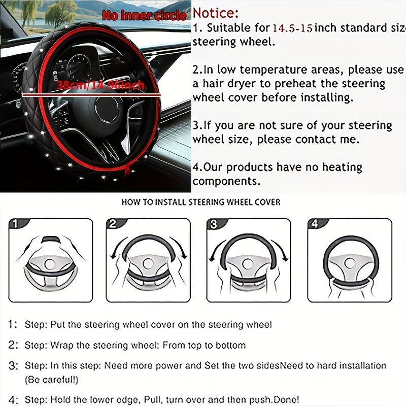 - נגיעת יהלומים זוהרת: הכיסוי מעוטר בקריסטלי יהלומים נוצצים בעבודת יד קפדנית, המוסיפים ברק ויוקרה שאין שני להם, מושכים את העין והופכים את הגה רכבך ליצירת אמנות בפני עצמה המשקפת את טעמך המעודן והייחודי.