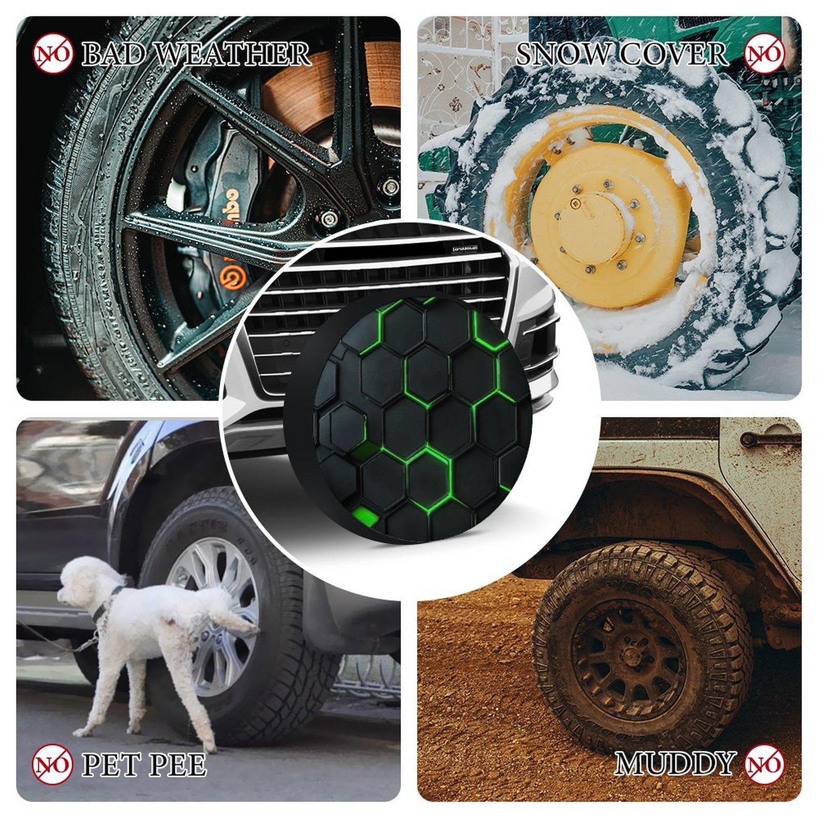 - הגנה מלאה לגלגלים שלך: כיסוי זה מספק שכבת הגנה נוספת ויעילה מפני לכלוך, אבק, שריטות, והשפעות מזיקות של תנאי מזג אוויר קשים כמו גשם ושמש קופחת, כדי לשמור על הצמיגים והגלגלים שלך במצבם הטוב ביותר ולהאריך את חייהם.