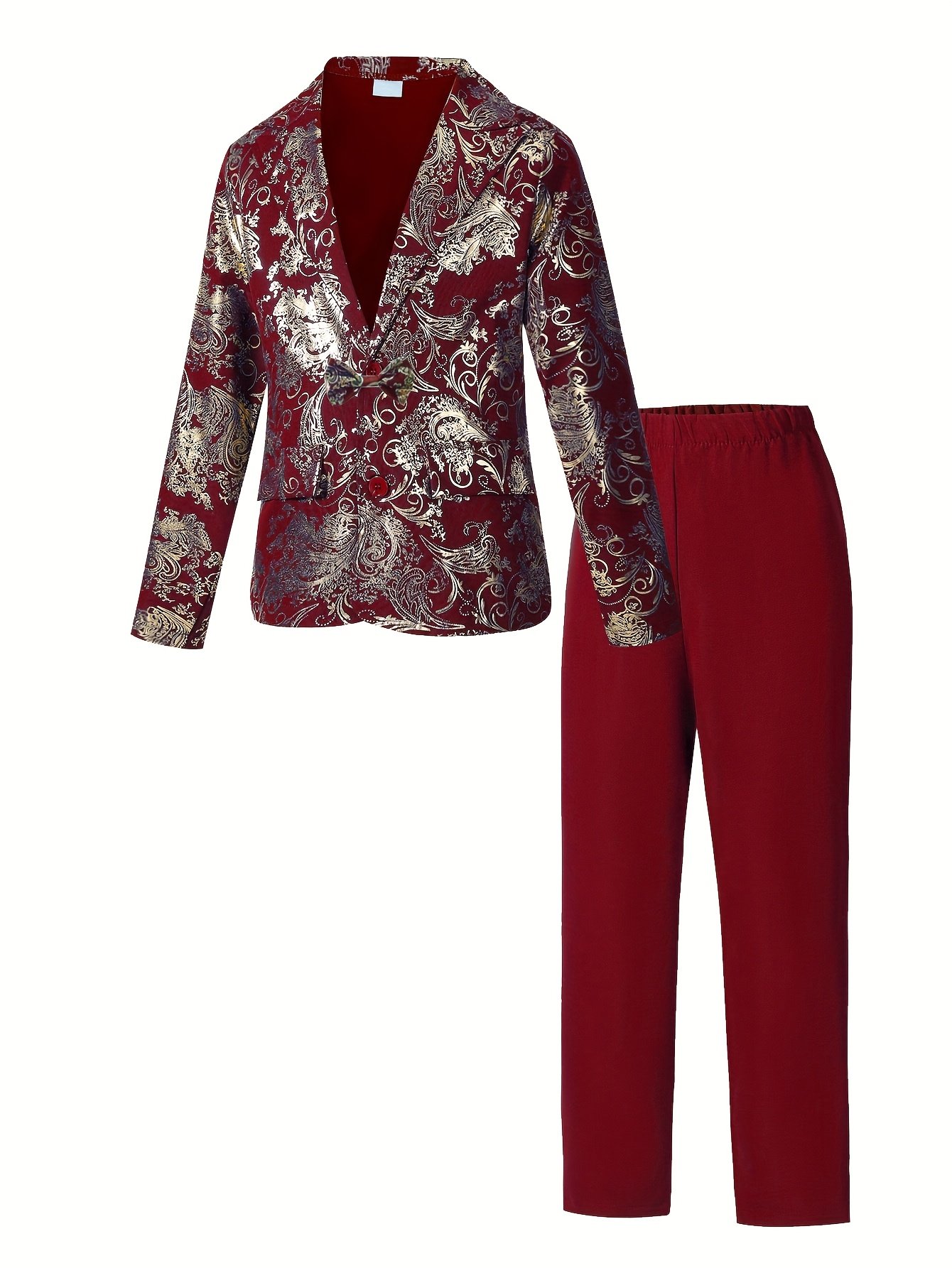- מראה מושלם ואלגנטי: החליפה כוללת ז'קט עם כפתורים וצווארון דש ומכנסיים בגזרה קלאסית, מה שמספק סט שלם שאינו דורש מאמץ בתיאום ומבטיח מראה מוקפד ומושך מכף רגל ועד ראש.