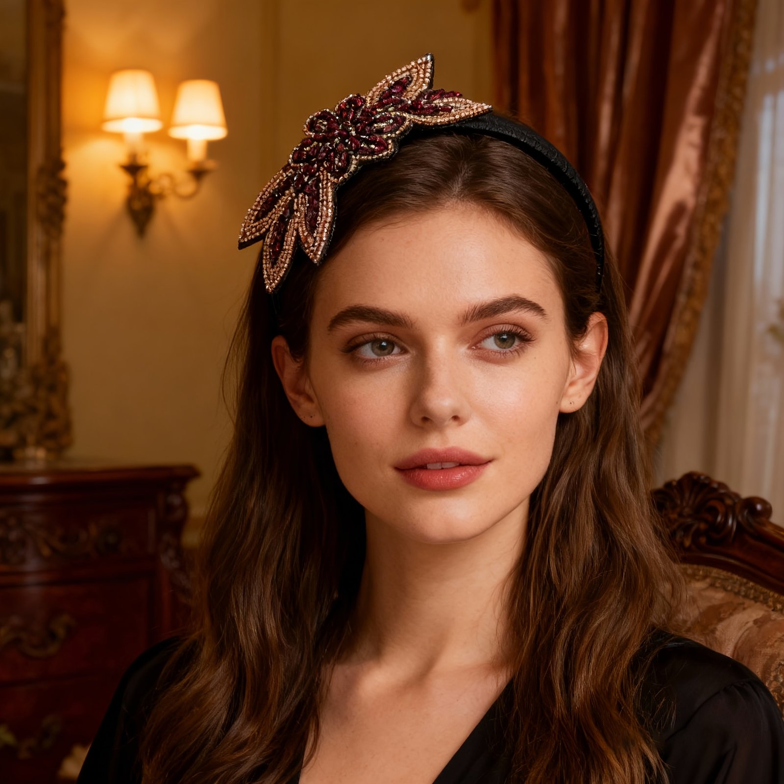 שקעי בקסם הזהוב של שנות העשרים והחזירי את זוהר האלגנטיות הנצחית עם סרט ראש יוקרתי זה. מעוצב בקפידה להיות יותר מסתם אביזר, אלא יצירת אמנות המספרת סיפור של יוקרה ויופי, כדי להעניק לך מראה שובה לב ובלתי נשכח בכל אירוע.