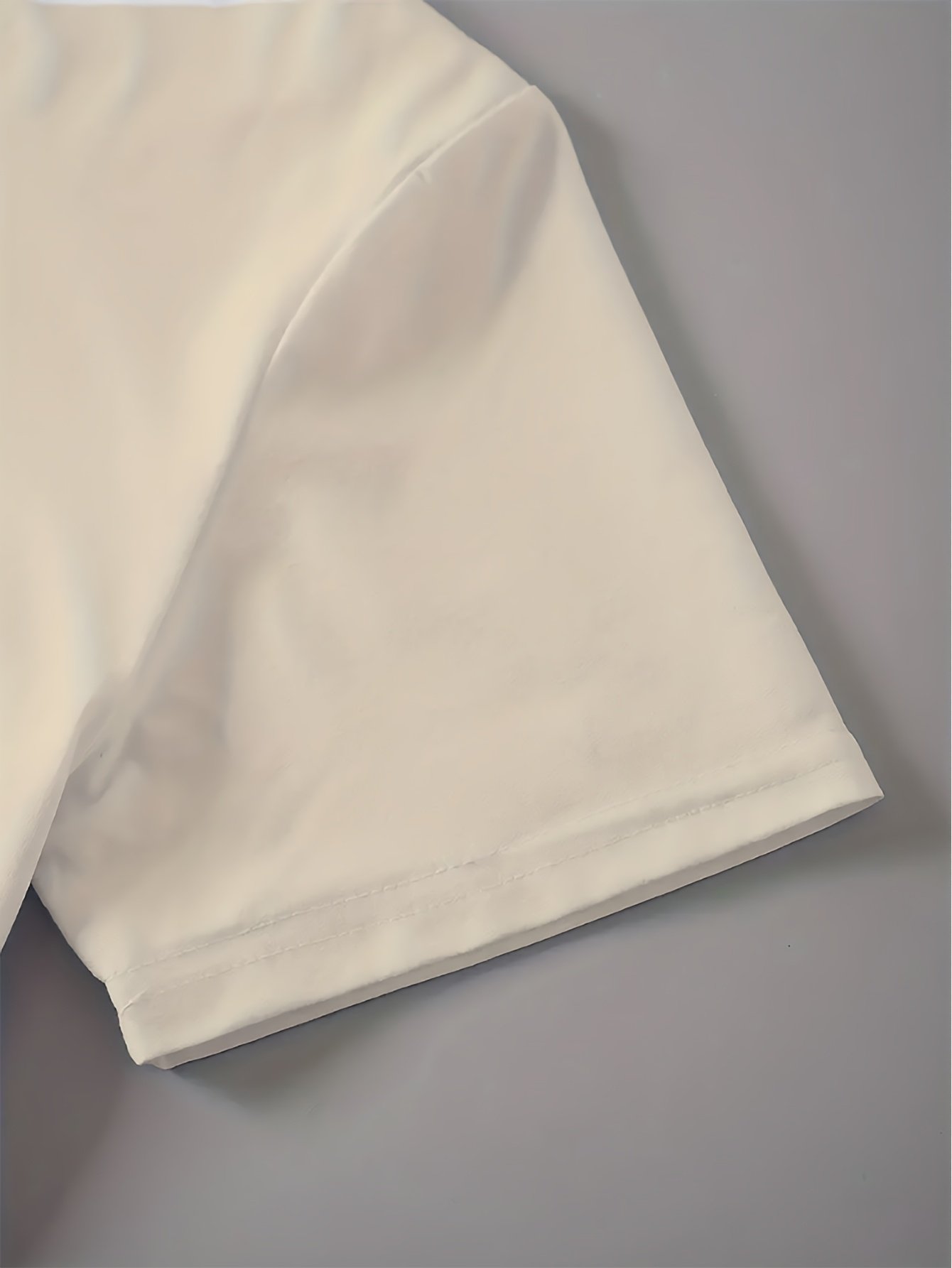 - אלגנטיות פשוטה: בעיצובה הקלאסי עם שרוולים קצרים וצווארון עגול, וגזרה מחמיאה סביב הירכיים המדגישה אלגנטיות בסגנון נוח ונטול יומרות.