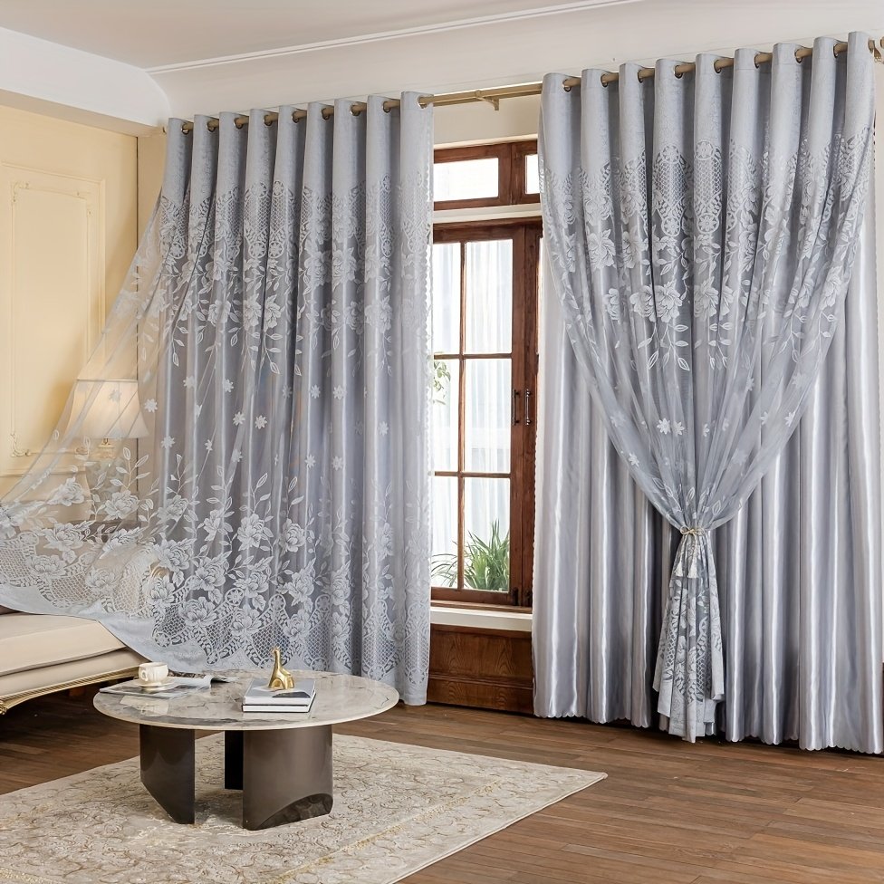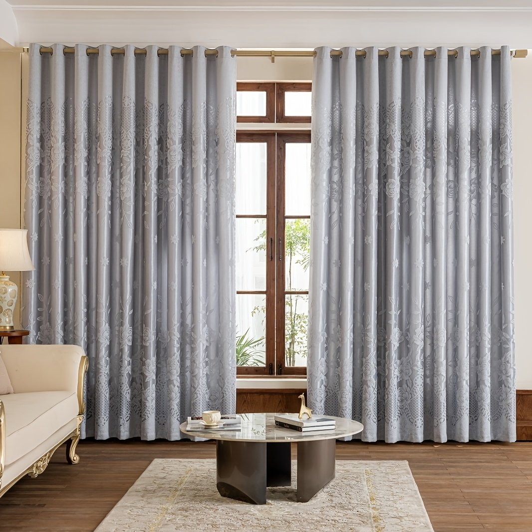 - עיצוב אמנותי ייחודי: וילון זה מקושט בבד ז'אקר ארוג בקפידה, המאופיין בדפוס פרחוני קלאסי וקסום. עיצוב זה מוסיף נופך של יוקרה ואלגנטיות אמנותית לעיצוב החדר שלך, מתאים לטעמים מעודנים ומשלים כל סגנון פנים.