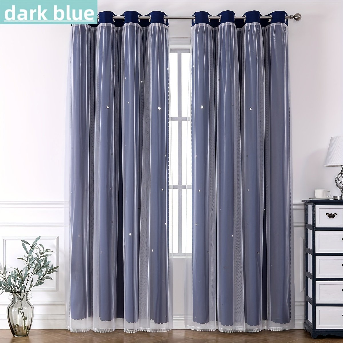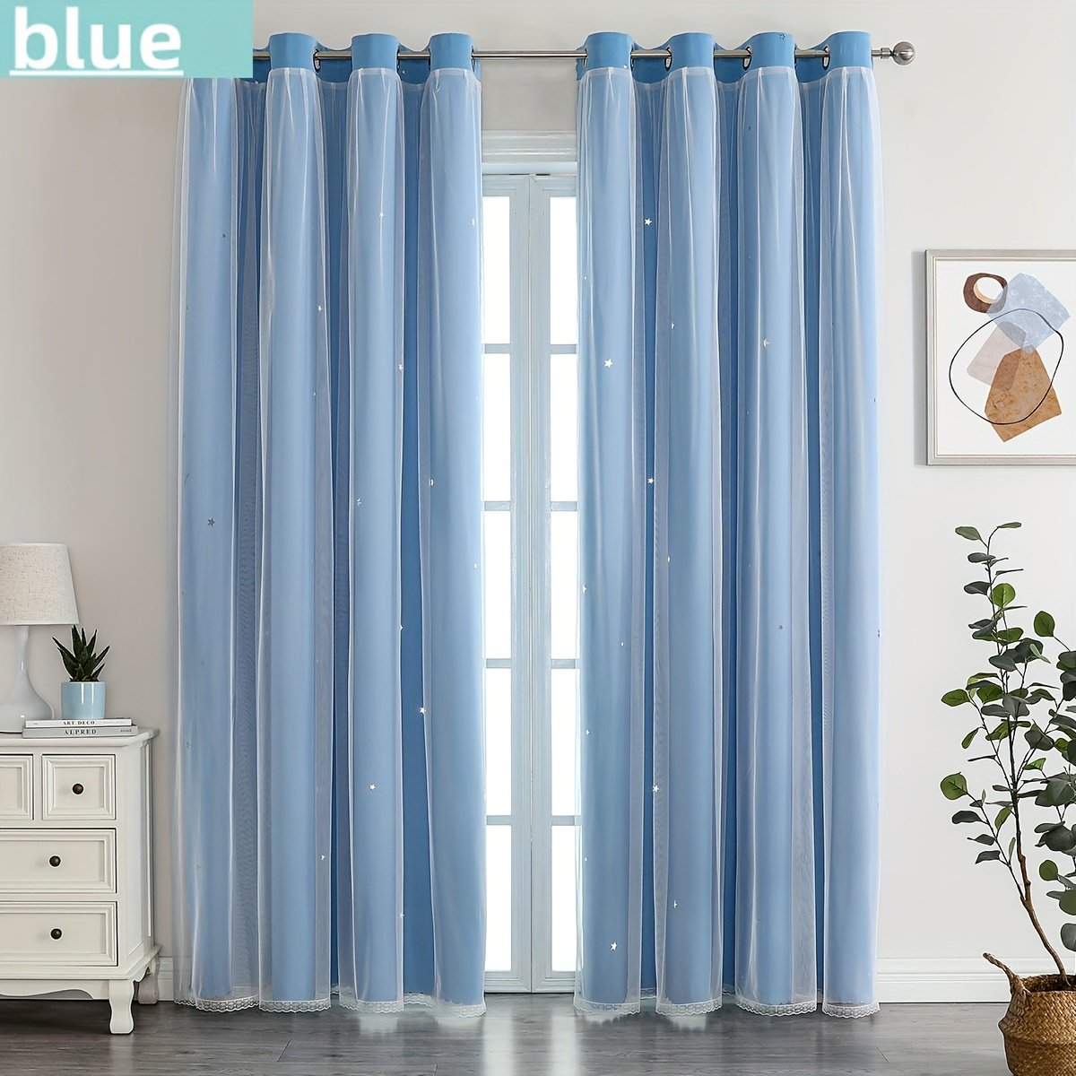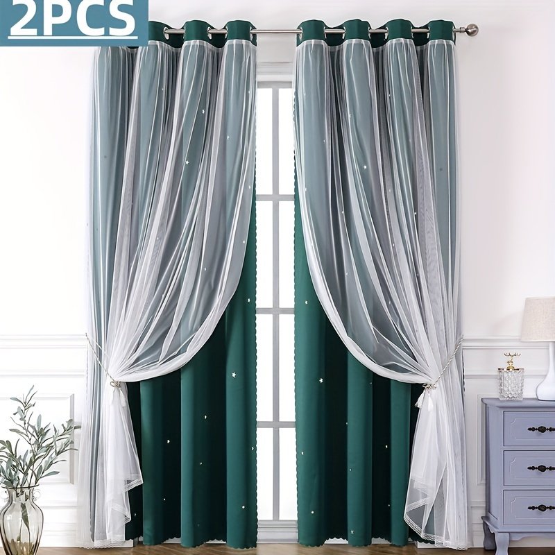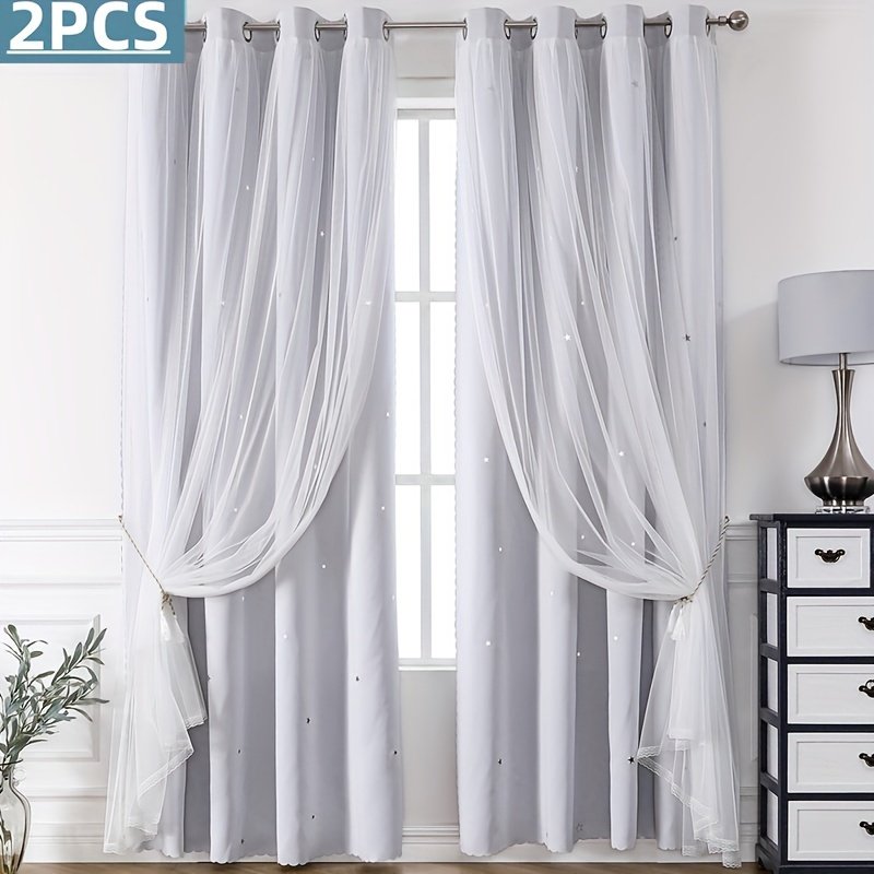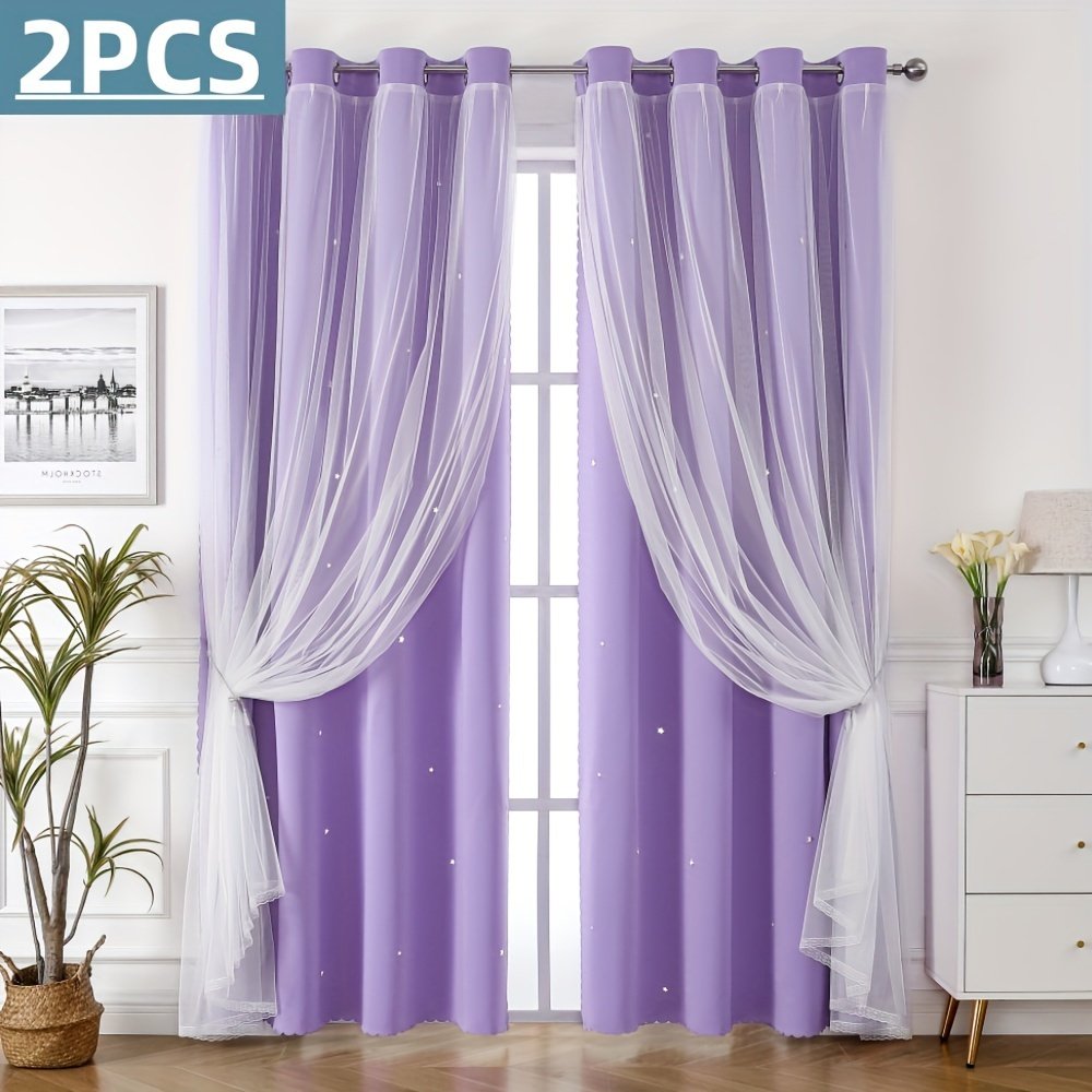 - עיצוב ייחודי דו-שכבתי: תיהנו מהטוב שבשני העולמות! שכבת האפלה עבה להבטחת פרטיות מלאה וחסימת אור, מעליה שכבת טול יוקרתית המעוטרת בכוכבים חלולים המאפשרים מעבר של הבהובי אור קסומים ביום ובלילה, ליצירת אווירה חלומית ונעימה.
