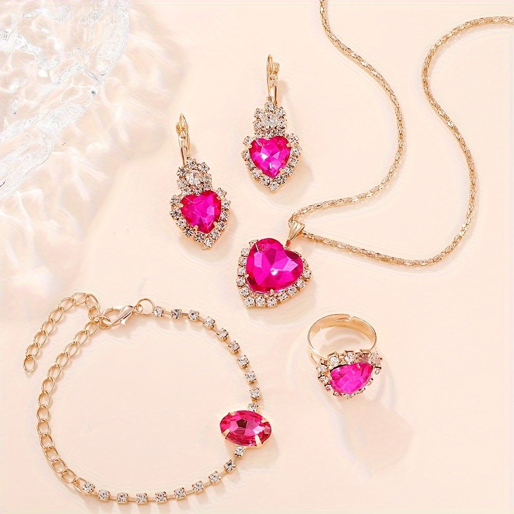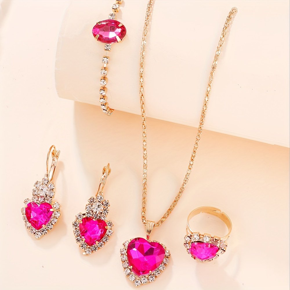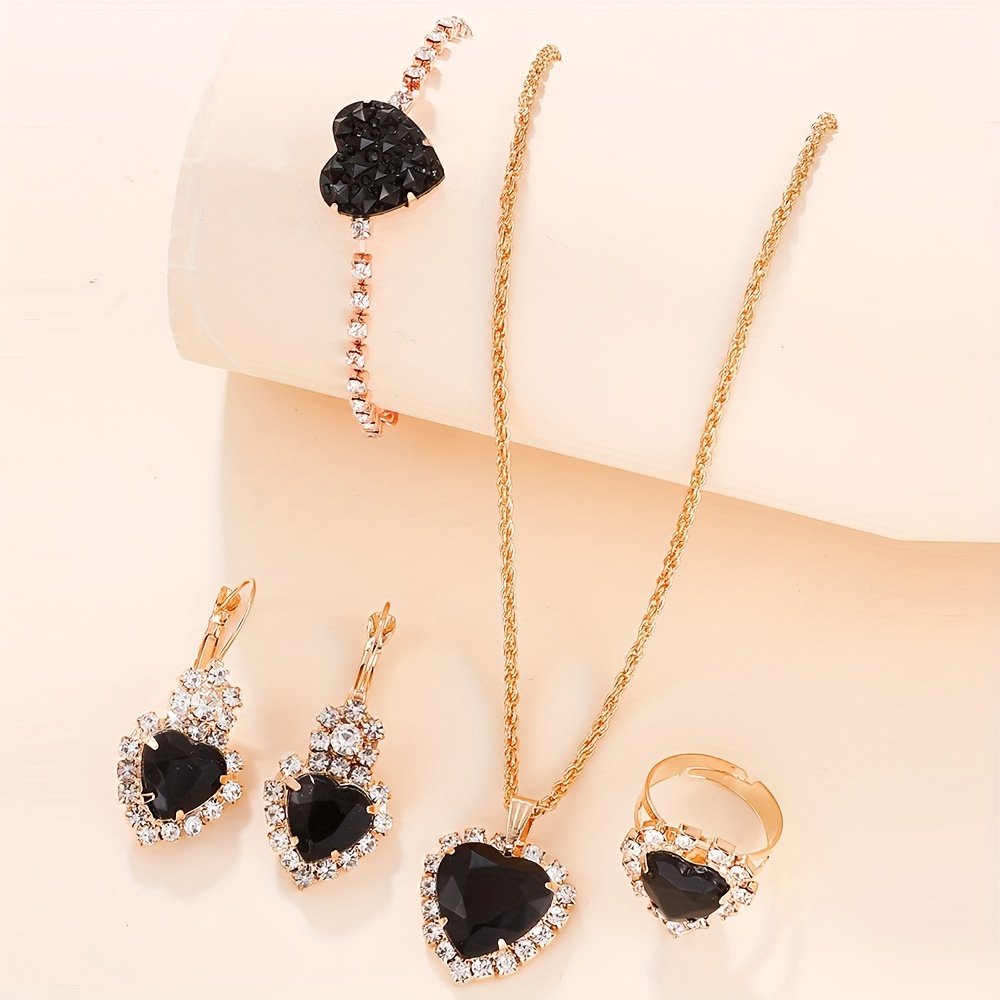 - עיצוב יוקרתי ועכשווי: הסט מורכב מ-5 חלקים מתואמים, מעוטרים באבנים נוצצות דמויות יהלומים, עשויים בדייקנות מחומרים איכותיים כגון סגסוגות מתכת עמידות וזכוכית פסיפס, מה שמבטיח ברק לאורך זמן ויופי שאינו דוהה.