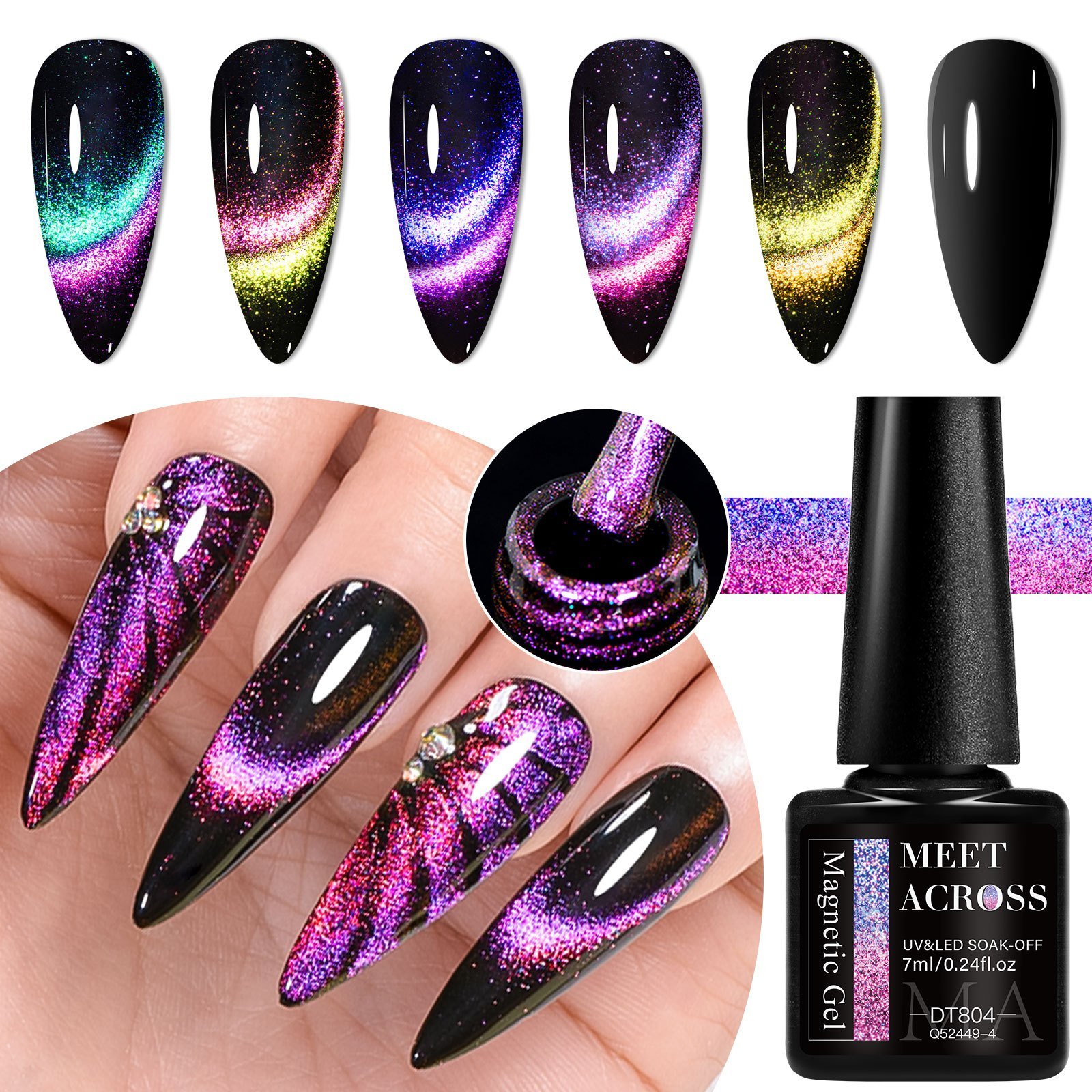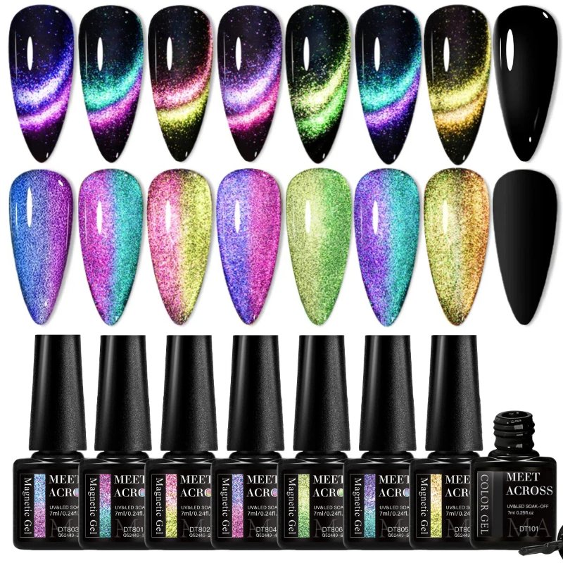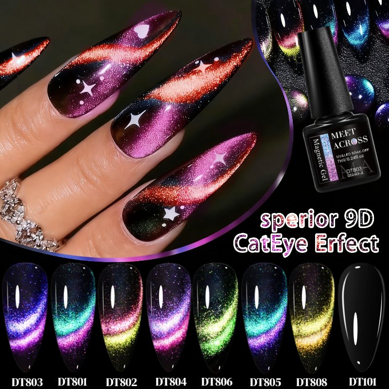 משכי את כל המבטים והבריקי בציפורניים מהפנטות המשקפות את אישיותך הייחודית עם סט ג'ל הציפורניים "עין החתול" 9D של MEET ACROSS. סט מהפכני זה נועד להעניק לך מראה אמנותי מקצועי בכל פעם, עם אפקט ברק תלת ממדי עוצר נשימה המעניק לידיים שלך אלגנטיות ללא תחרות. תני לציפורנייך לספר סיפור של יופי ומצוינות בכל תנועה.