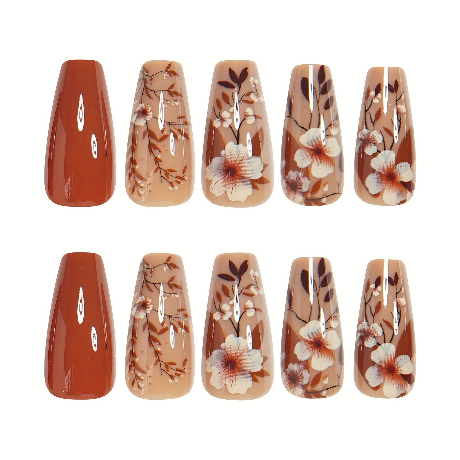 מחפשת דרך קלה ומהירה לחדש את המראה שלך ולהעניק לציפורנייך מראה ייחודי שעומד בקנה אחד עם הטרנדים האחרונים באופנה? אנו מציגים לך את סט הציפורניים המלאכותיות הזה, שעוצב במיוחד כדי להוסיף נגיעה של חמימות ואלגנטיות לידייך בעונות הסתיו והחורף. תני לציפורנייך לדבר על אישיותך הכובשת והמעודנת עם עיצוב זה בהשראת יופי הטבע הסתווי, שנועד להעניק לך קסם שאין לעמוד בפניו.