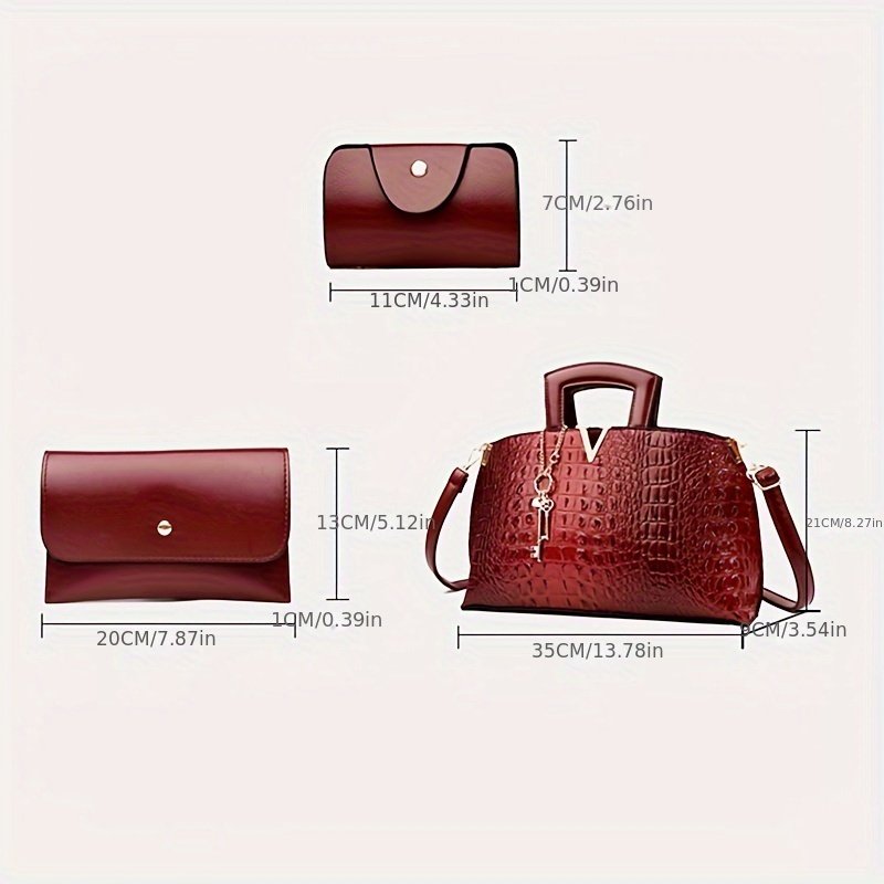 מחפשת אלגנטיות המשלבת שיק ופרקטיות כאחד? אנו מציגים לך את סט תיקי התנין המשולש, שעוצב במיוחד עבור האישה המודרנית המעריכה יוקרה ואיכות גבוהה. סט זה הוא לא רק תיקים, אלא אביזרים משלימים המוסיפים מגע קסום ומיוחד לכל מראה, מפגישות עבודה חשובות ועד ערביך הפרטיים, כדי שתזהרי בביטחון ובקסם שאין שני לו.
