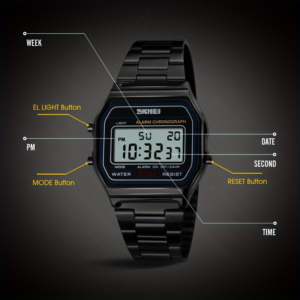 - ביצועים דיגיטליים מדויקים ורב-תכליתיים: מציג את השעה בבירור מוחלט דרך צג דיגיטלי קל לקריאה, וכולל שעון עצר מדויק שיסייע לכם לעקוב אחר פעילויותיכם הספורטיביות ביעילות מירבית ובדיוק אבסולוטי.