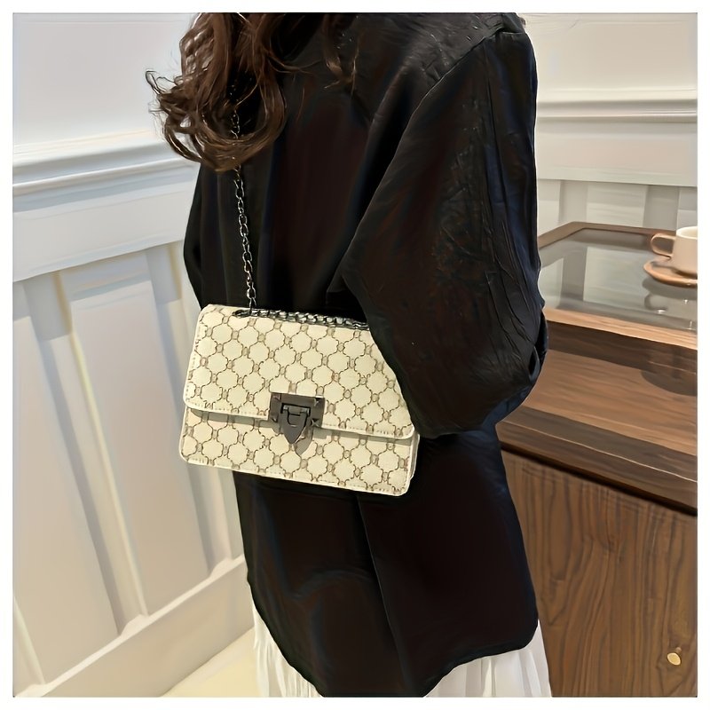 - גמישות בנשיאה ופרטים יוקרתיים: רצועת כתף מתכווננת מאפשרת לך לשאת אותו בסגנון קרוס-באדי או על הכתף בנוחות מירבית, מקושטת בשרשרת מתכת אלגנטית המוסיפה ליוקרתו וייחודו.