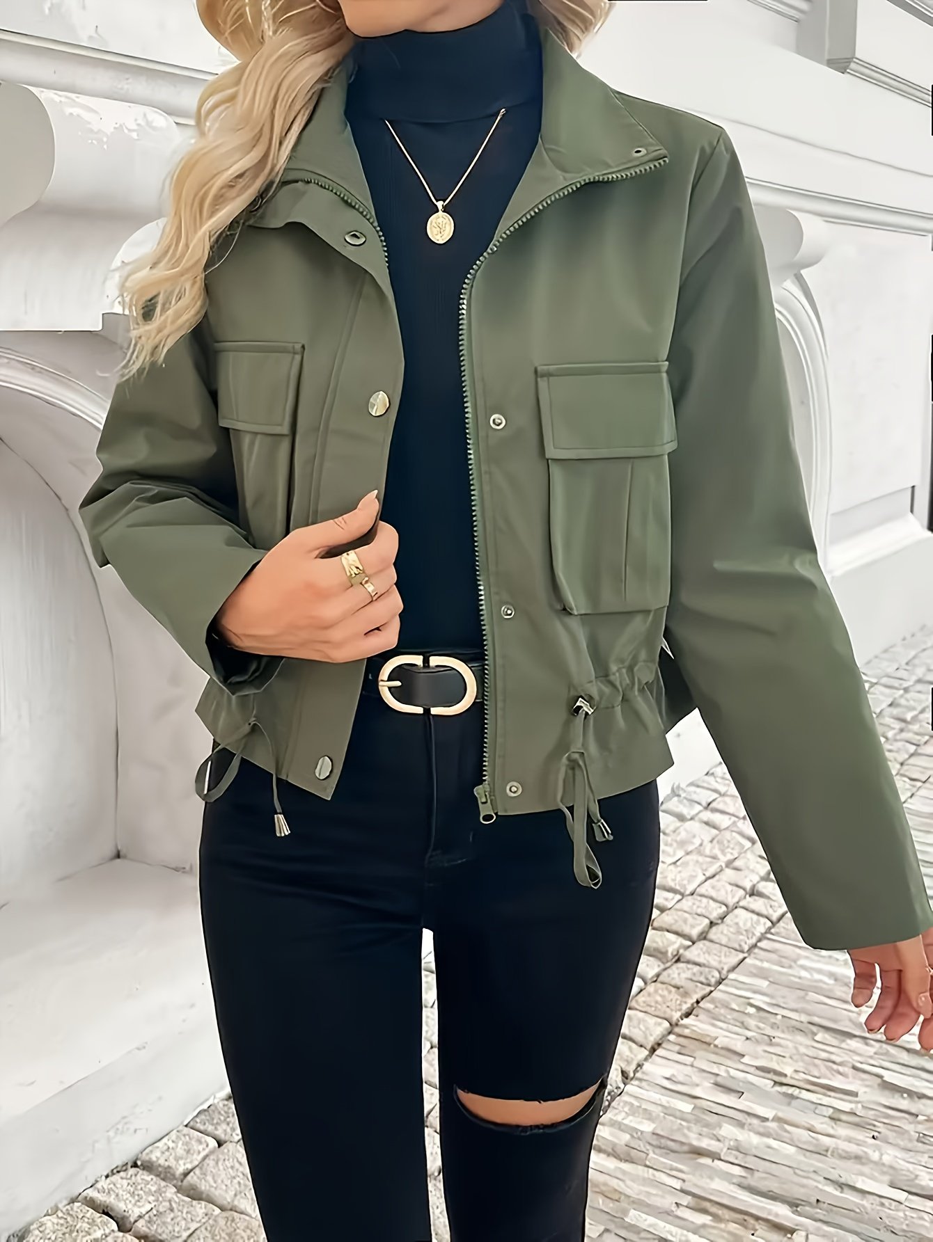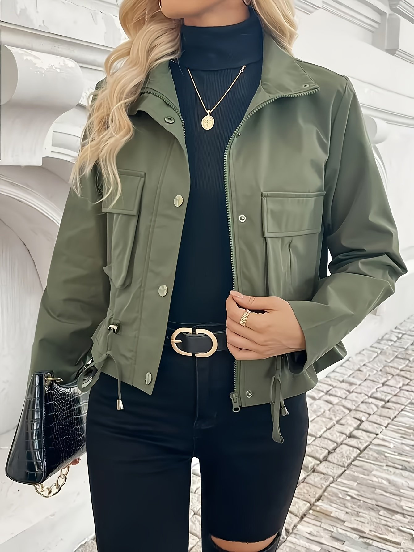 שדרגי את המראה שלך עם ז'קט הזית המשלב יוקרה ופרקטיות. עוצב כדי ללוות אותך בכל רגע, מפגישות עסקיות ועד ערבים, ומעניק לך מגע של תחכום מודרני ואלגנטיות נצחית. פריט חובה בארון הבגדים שלך, המשלב עיצוב מוקפד ונוחות מירבית כדי שתזרחי בביטחון ובקסם בכל מקום שתלכי.