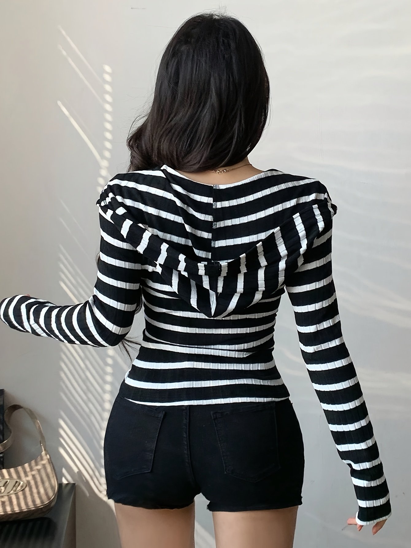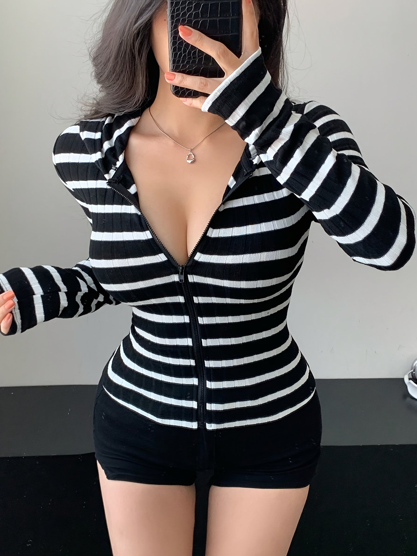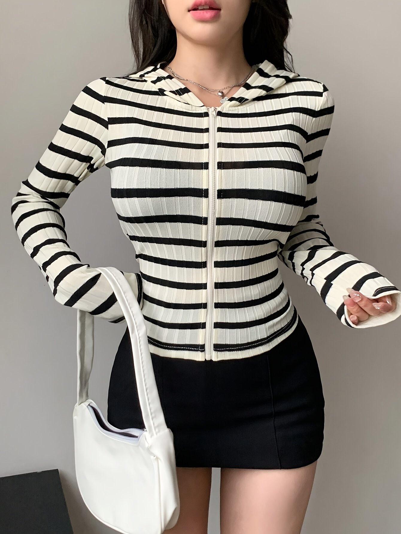 - עיצוב אופנתי ומושך: כולל דפוס פסים קלאסי בשחור-לבן, רוכסן קדמי מלא, וקפוצ'ון פרקטי ומסוגנן המעניק לך מראה צעיר ואופנתי המדגיש את טעמך המשובח.