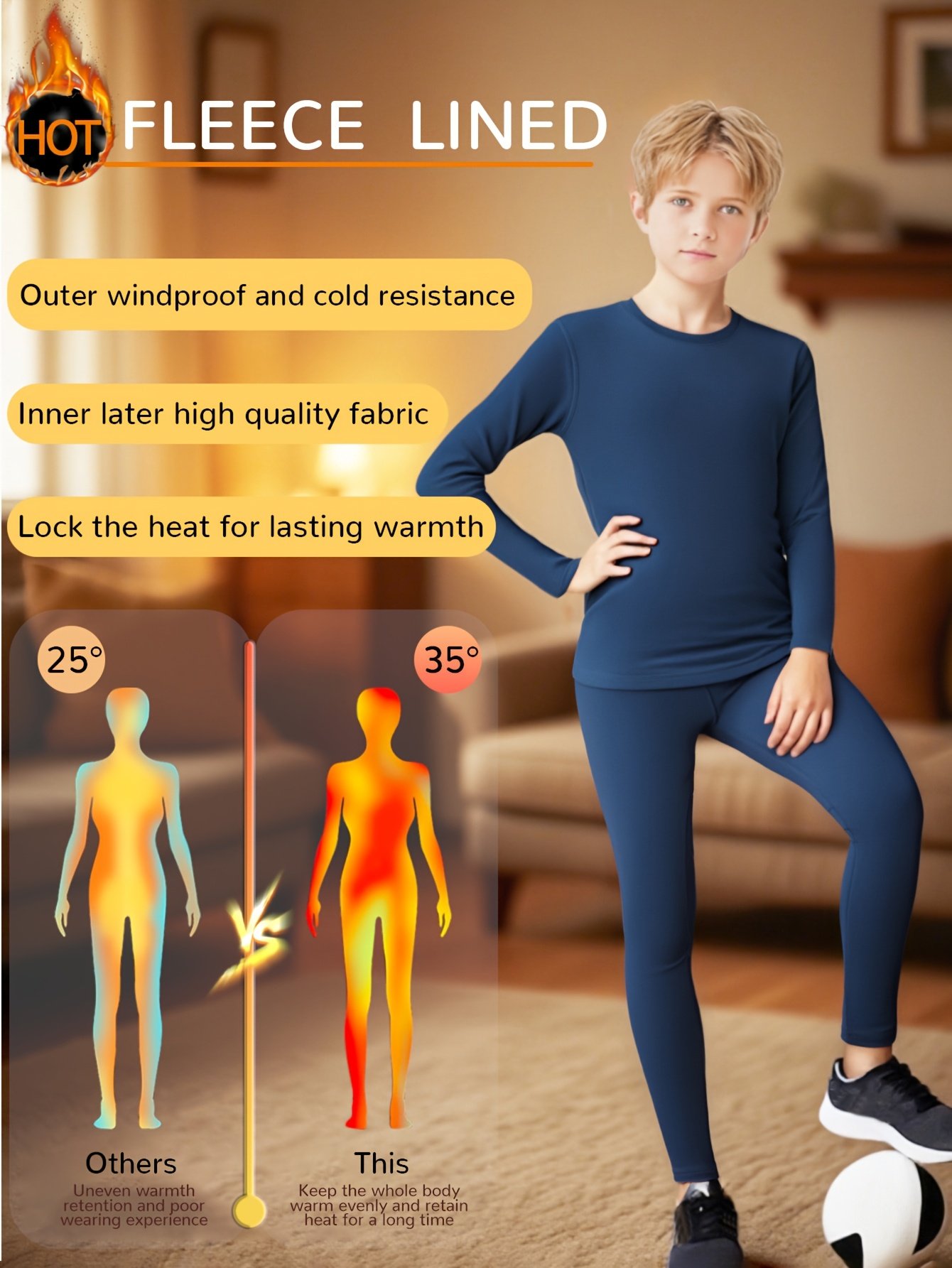• התאמה מושלמת והגנה מקיפה: עם עיצובה הצמוד (Skinny Fit), היא נצמדת לגוף בעדינות כדי ללכוד את החום ומספקת שכבת בסיס אידיאלית לבנים עד גיל 12, מה שהופך אותה למתאימה למשחק ופעילויות שונות.