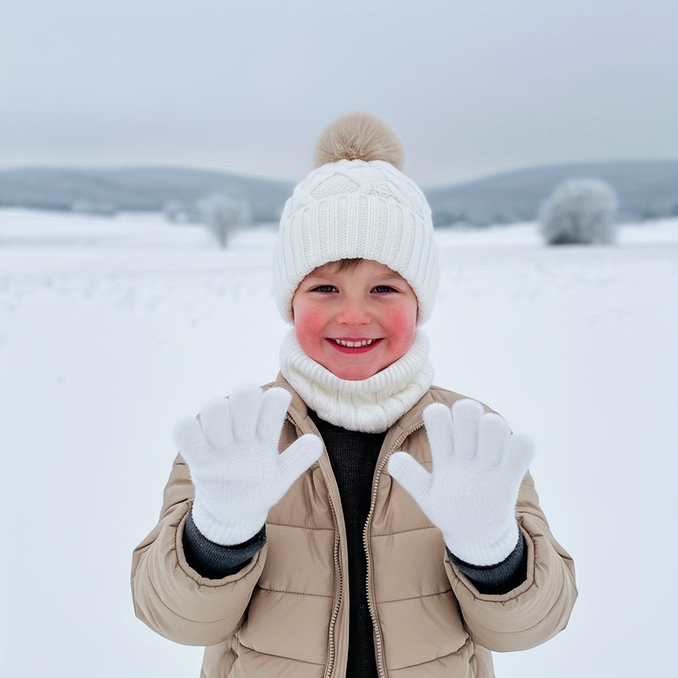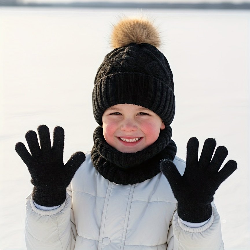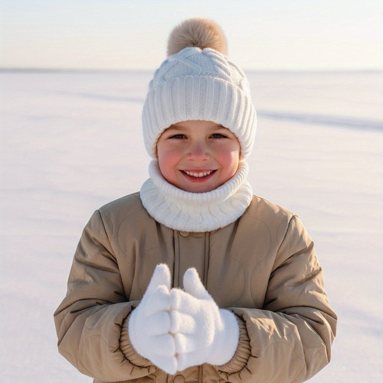 - הגנה מקיפה מפני קור: הסט כולל כובע אלגנטי המעוטר בפונפון שובב, צעיף רך העוטף את הצוואר בחמימות, וזוג כפפות נוחות המגנות על הידיים הקטנות, כדי להבטיח חום מלא לראש, לצוואר ולידיים של ילדכם מפני קשיי החורף.