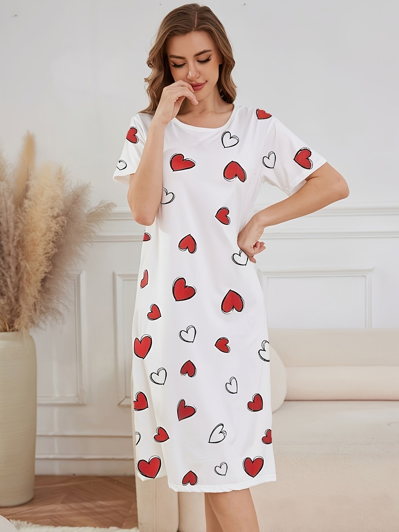 - עיצוב לבבות קסום ועכשווי: השמלה מעוטרת בהדפס לבבות אקראי ואלגנטי המוסיף נופך של נשיות ורומנטיקה, כך שתרגישי יפה גם ברגעי הרוגע השקטים ביותר שלך.