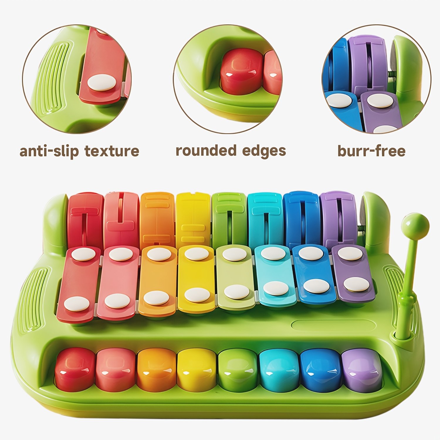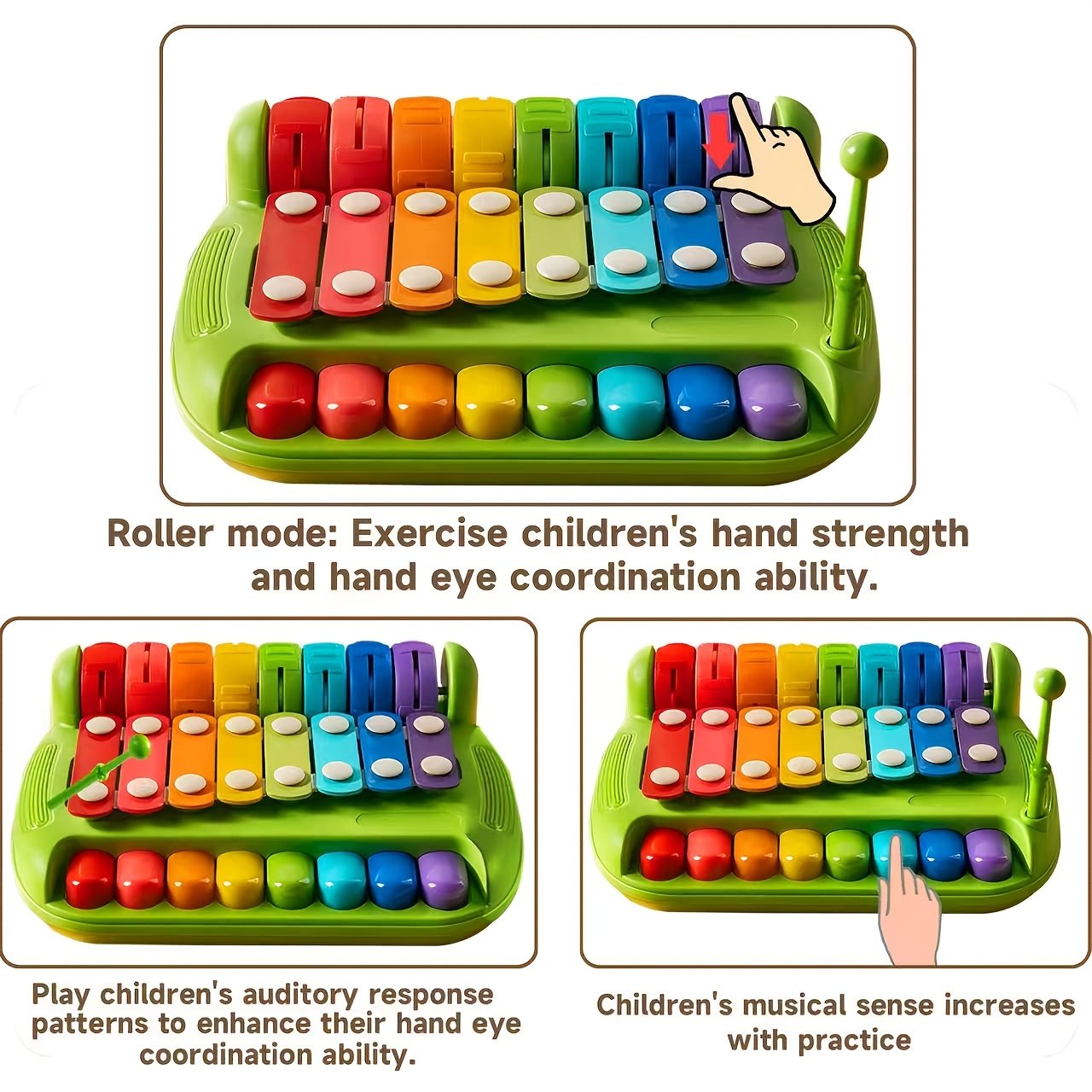 - הנאה משולשת: הצעצוע המשולב הזה משלב פסנתר לילדים עם שמונה מקשים צבעוניים, קסילופון קסום, ותכונת סיבוב ייחודית ליצירת צלילים ומקצבים מגוונים, מה שמבטיח אינספור שעות של חקר מוזיקלי ובידור.