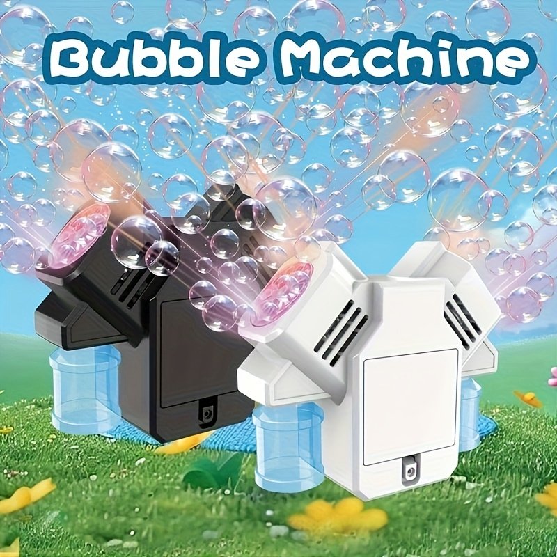 - זרימת בועות כפולה: תיהנו מכיף בלתי פוסק עם העיצוב הייחודי שלה עם שני מיכלים כפולים, המשחרר ענן צפוף ורציף של בועות מנצנצות כדי להציף את האווירה בשמחה.