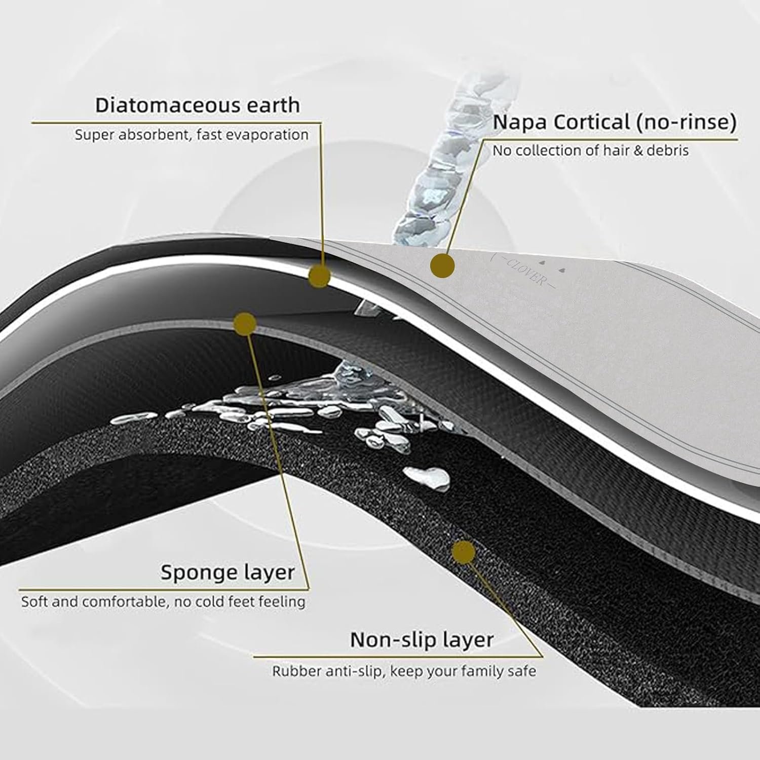 - ספיגה מדהימה וייבוש מיידי עם תכונות דיאטומיט: שטיחון זה מתאפיין ביכולת יוצאת דופן לספוג נוזלים במהירות שיא, הודות לחומרו החדשני העשיר בתכונות דיאטומיט המבטיחות ייבוש רצפת מטבחך תוך שניות ומונעות הצטברות לחות וכתמים.