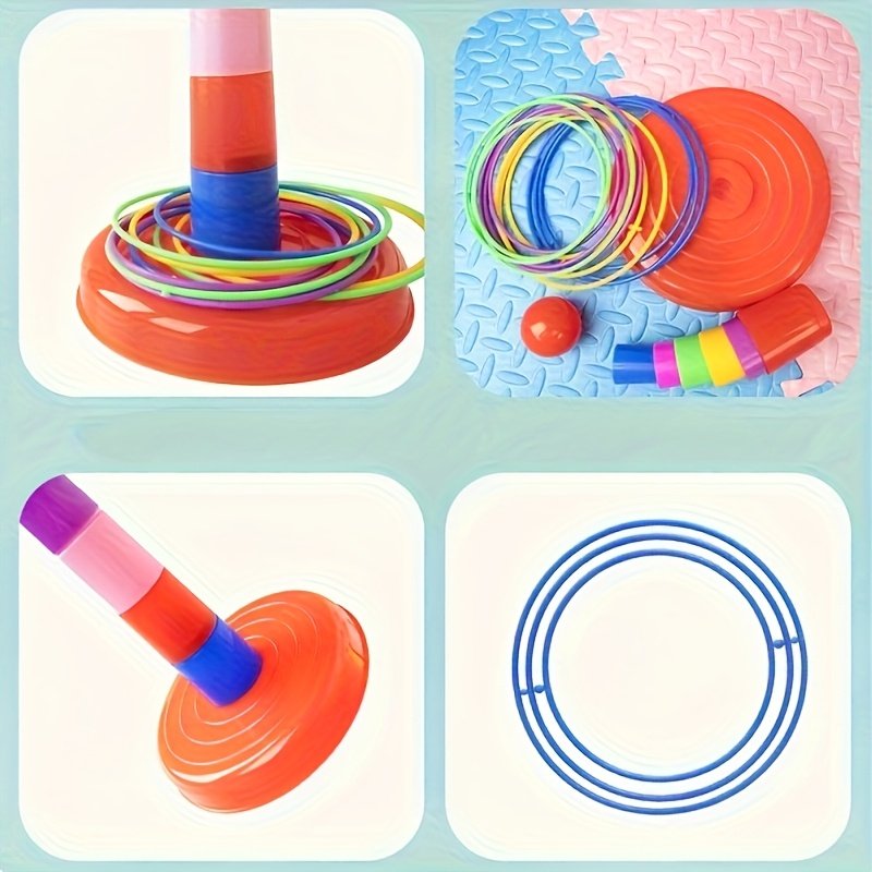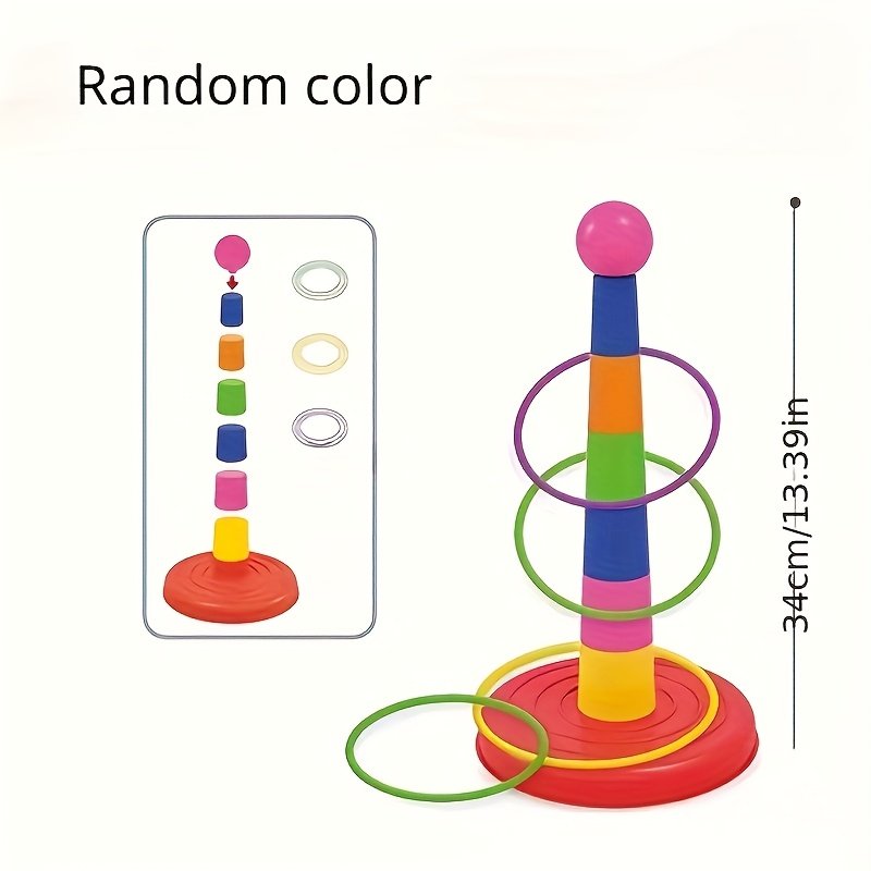 - עיצוב אטרקטיבי וצבעים עליזים: המשחק מגיע עם טבעות רב-צבעוניות ועיצוב שמושך את תשומת לב הילדים, מה שהופך את חווית המשחק לחיונית, מהנה ומרגשת יותר. הצבעים הבהירים מוסיפים נופך של שמחה לכל אירוע.