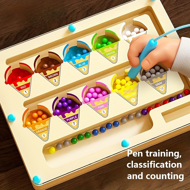 - שליטה מגנטית חדשנית: מציע חווית משחק ייחודית שבה ילדכם משתמש בעט המגנטי כדי להדריך את החרוזים דרך המבוך, מה שמחזק את תיאום עין-יד ואת השליטה המדויקת.