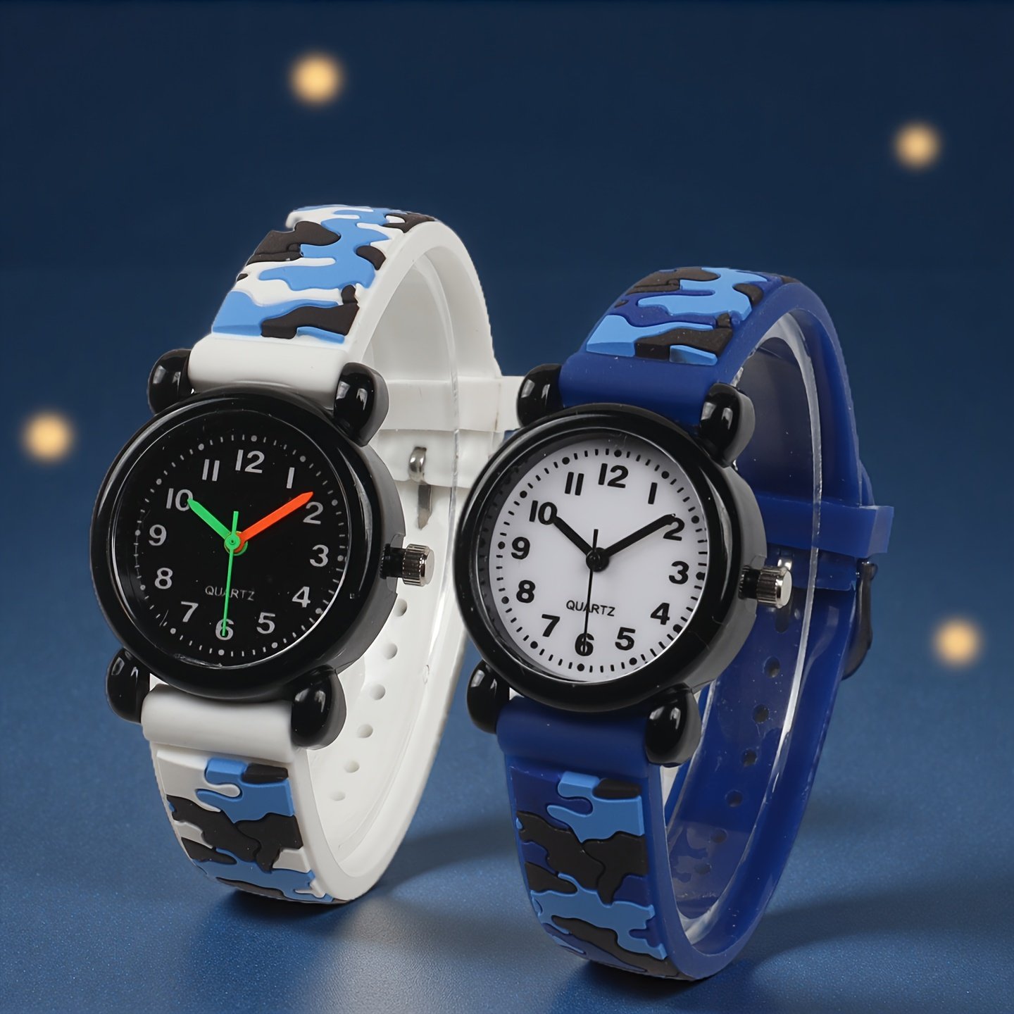 האם אתם מחפשים את המתנה המושלמת המשלבת בין סטייל צעיר, עמידות וקלות שימוש? אנו מציעים לכם מבצע יוצא דופן: זוג שעוני קוורץ בדוגמת הסוואה, שעוצבו במיוחד כדי להתאים לטעם של צעירים וסטודנטים! העיצוב הייחודי שלהם והתכונות הפרקטיות הופכים אותם לתוספת המושלמת למראה היומיומי שלכם, בין אם ללימודים, פעילויות ספורט או לבוש יומיומי.