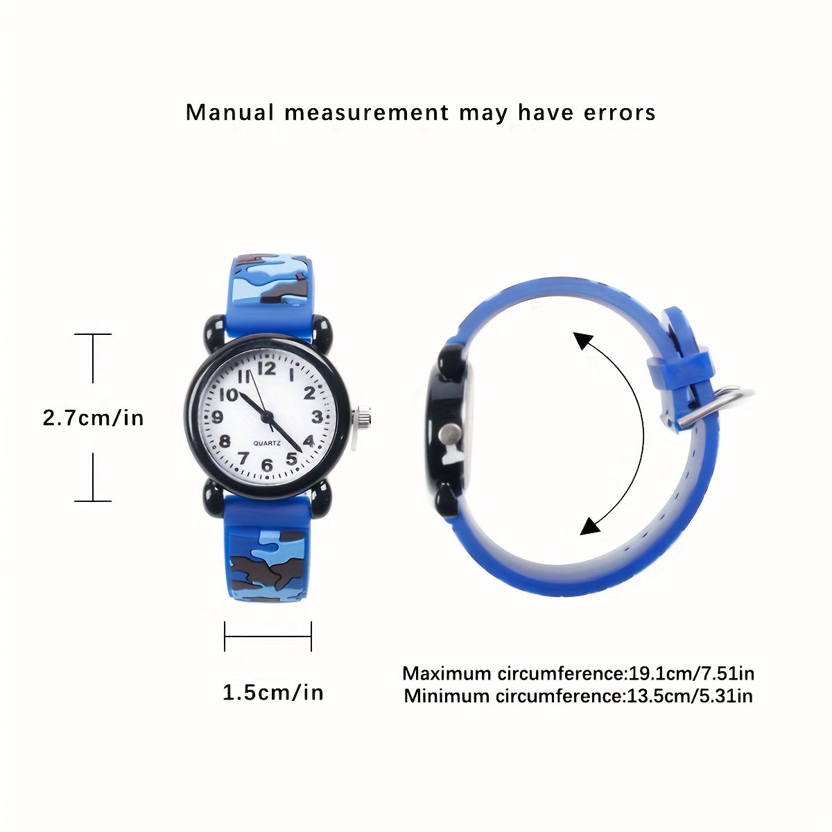 - עמידות ואיכות גבוהה: רצועה עשויה מחומר PVC (פוליוויניל כלוריד) עמיד ומארז שעון מסגסוגת מתכת עמידה, להבטחת שימוש ארוך טווח ונוח על פרק כף היד שלכם.