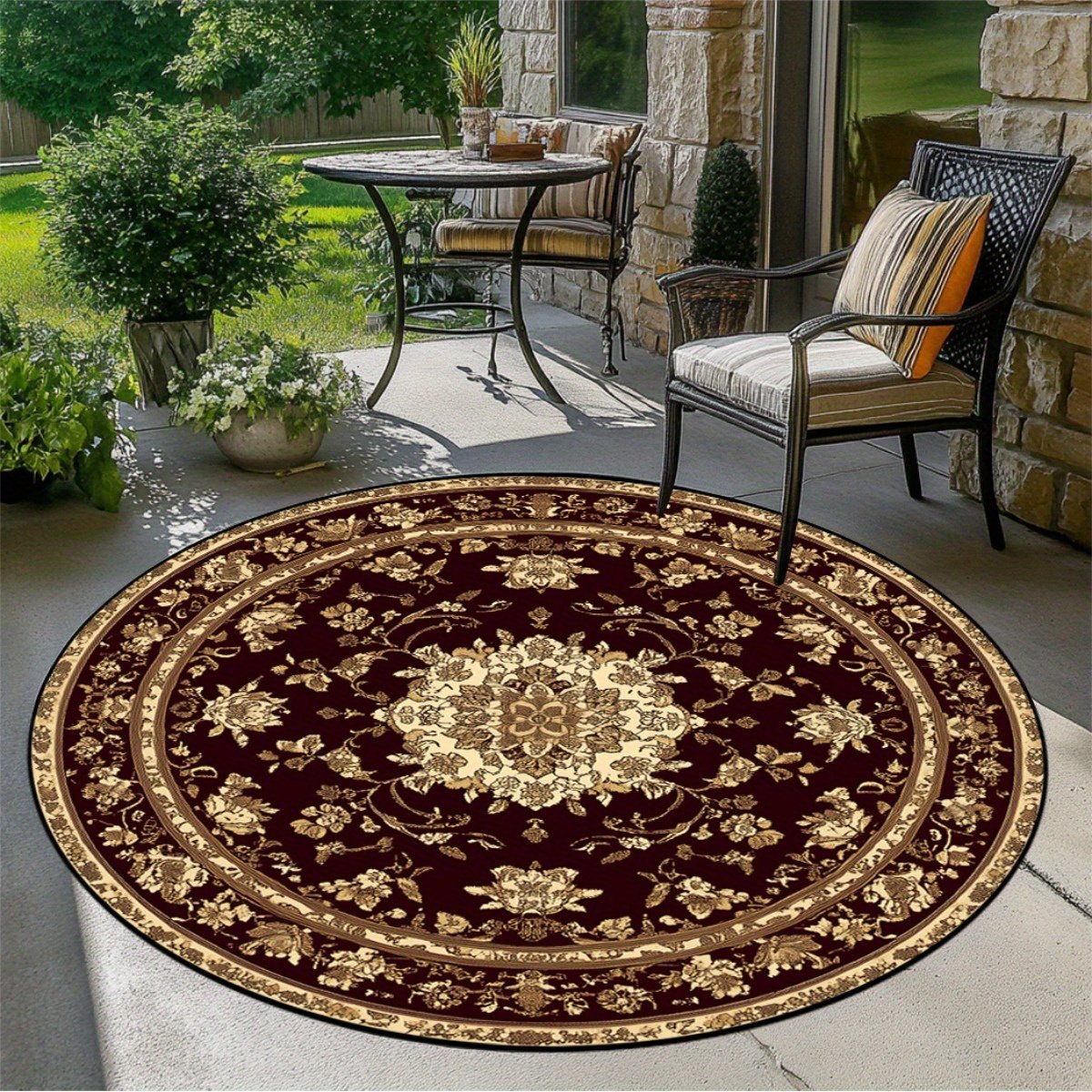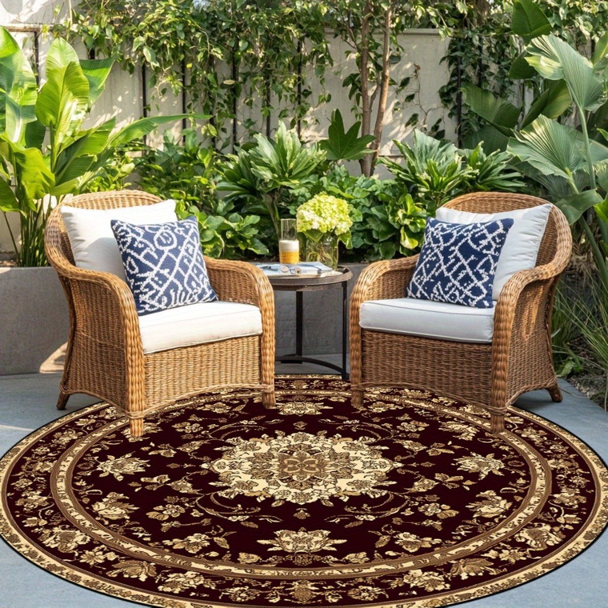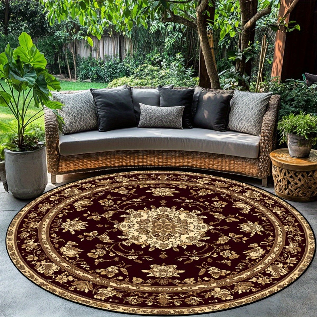 מחפשים פריט אמנותי שיעשה את ההבדל בעיצוב הבית שלכם? אנו מציגים לכם את השטיח העגול שלנו עם דוגמת פרחים זהובה ומהפנטת, שעוצב להוסיף חמימות ויוקרה לכל חדר. תיהנו מעיצוב המשתלב בצורה חלקה עם מגוון סגנונות, מקלאסי ועד מודרני, והופך למוקד משיכה חגיגי באירועים מיוחדים. הפכו כל פינה בביתכם ליצירת אמנות תוססת עם השטיח המקסים הזה המבטיח מגע של אלגנטיות נצחית.